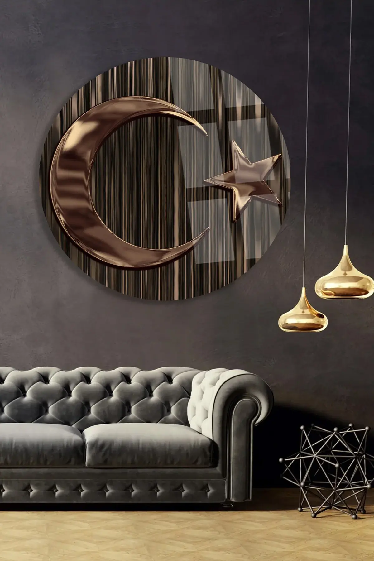 BRONZ TÜRK BAYRAĞI TASARIMI LÜKS KIRILMAZ MODERN CAM TABLO HEDİYE TABLO MODERN TABLO Metalik