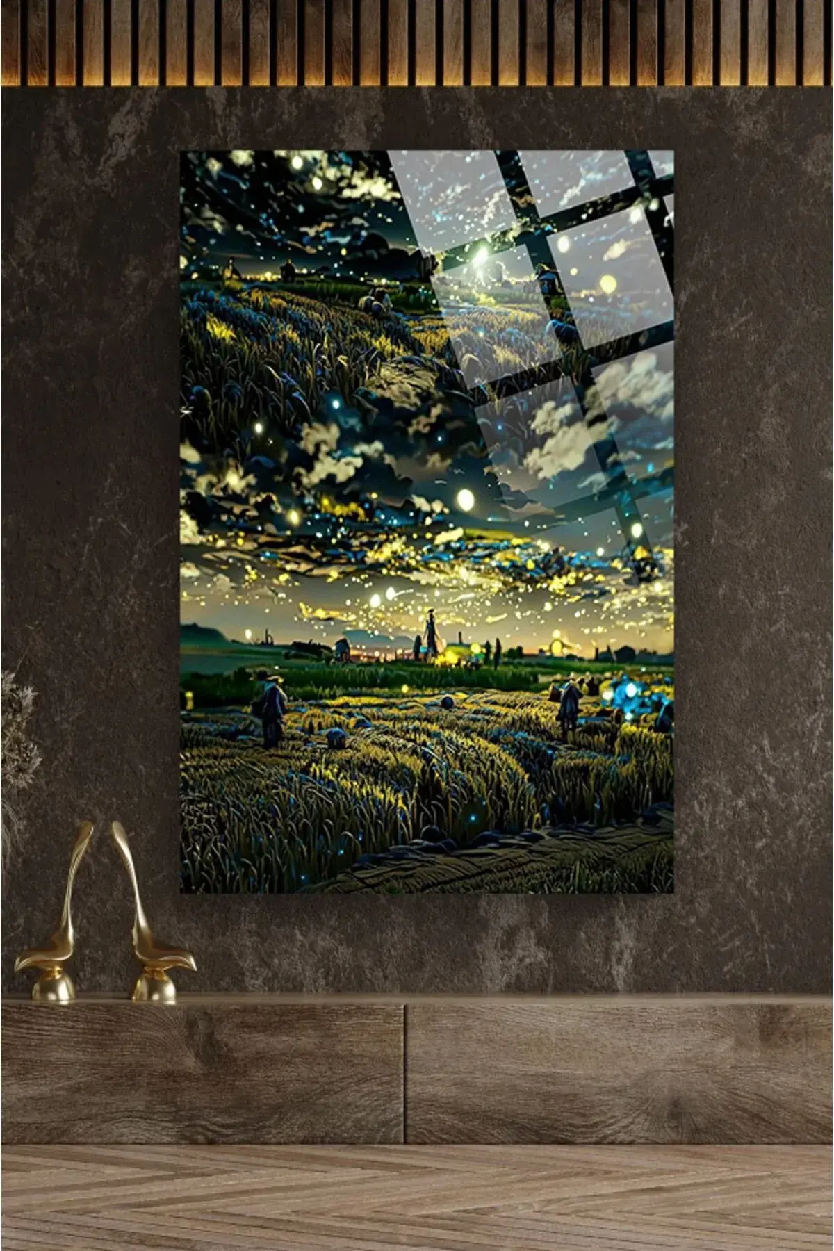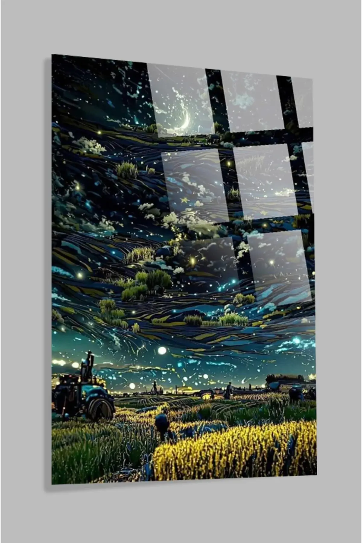 Buğday Tarlası Gökyüzü Görüntüsü 4mm Lüks Kırılmaz Temperli Yüksek Çözünürlüklü Cam Tablo