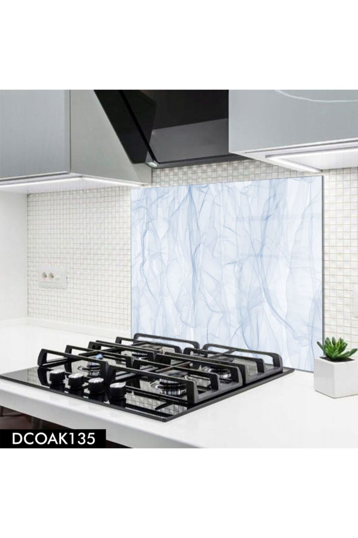Cam Ocak Arkası Koruyucu | Gök Mavisi Dali Desenli