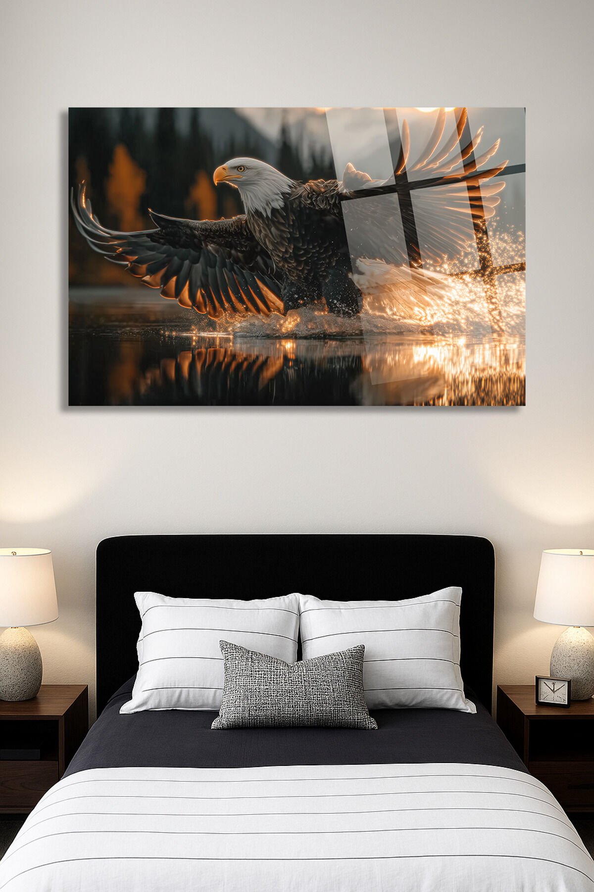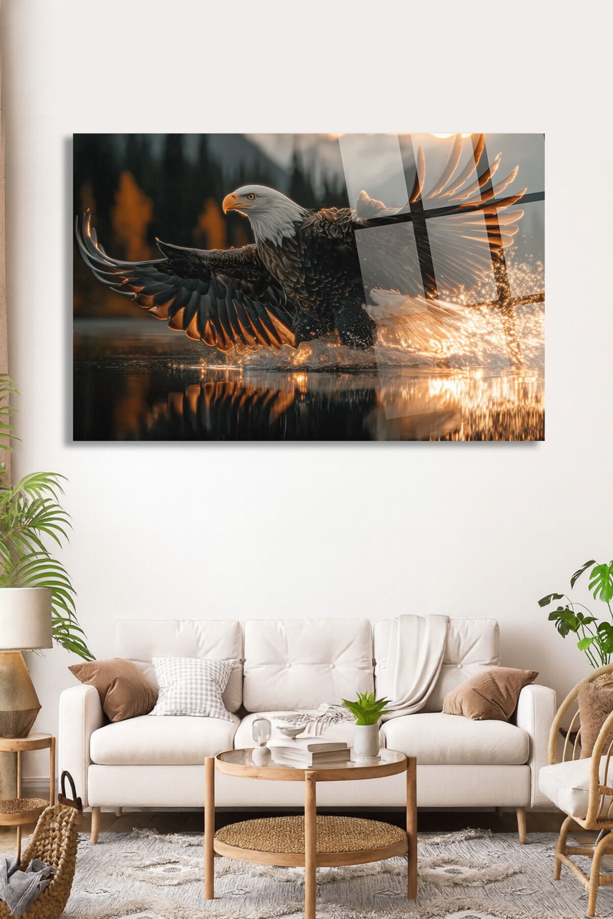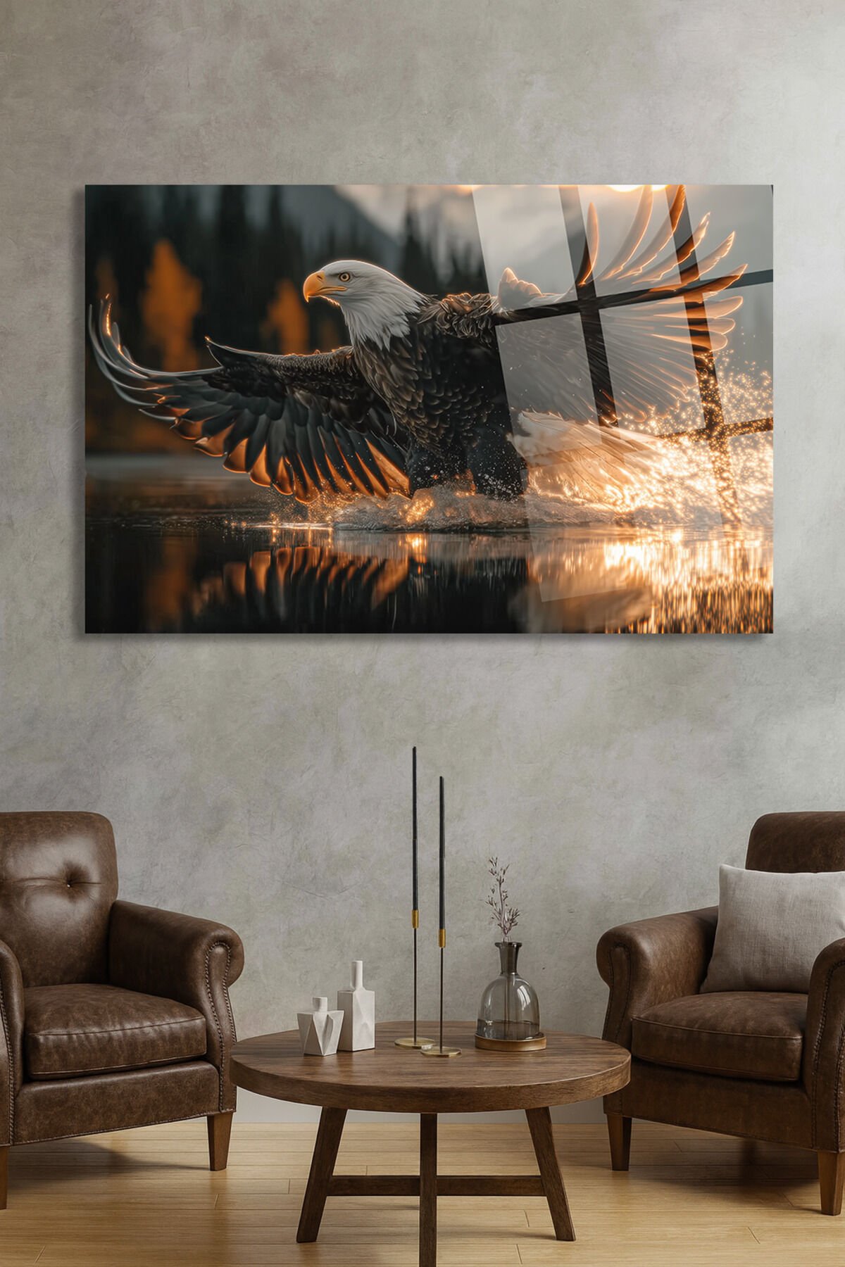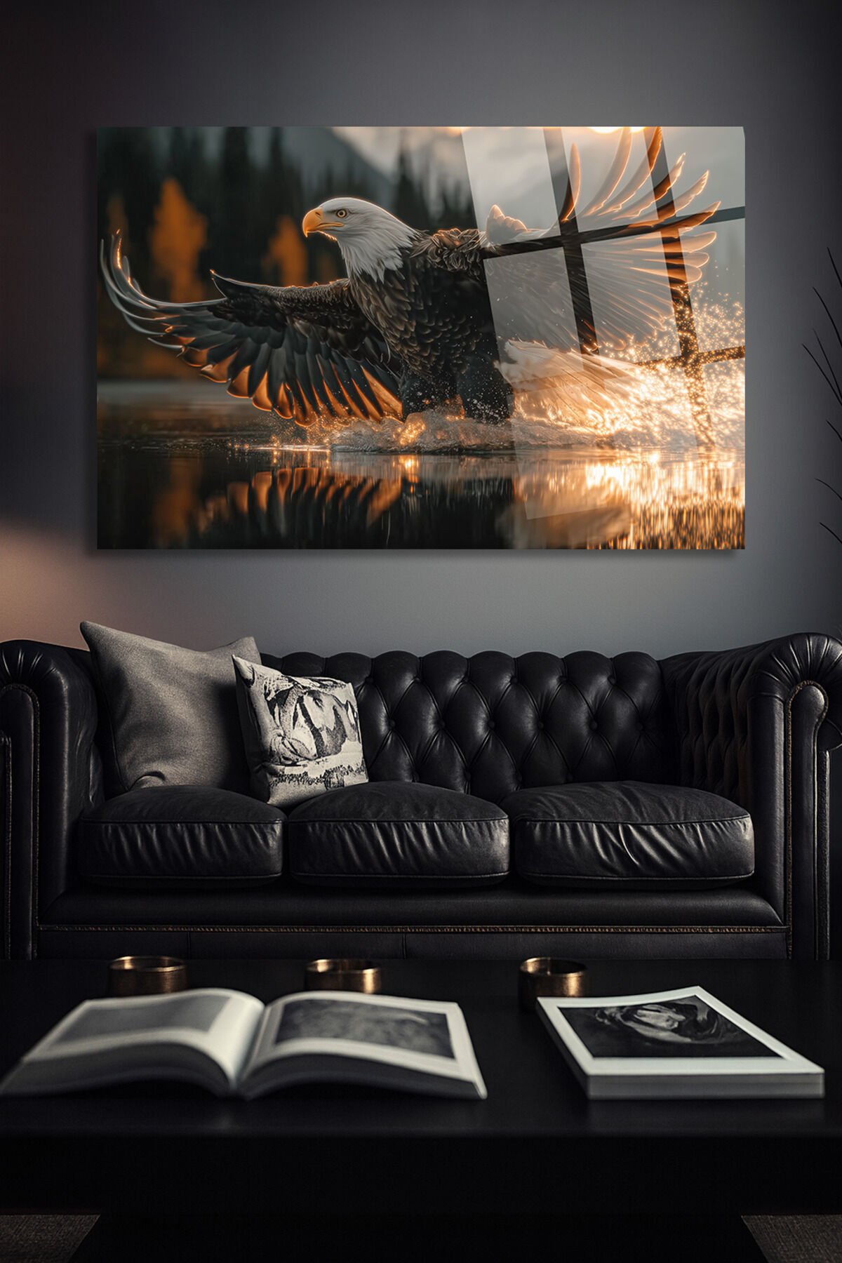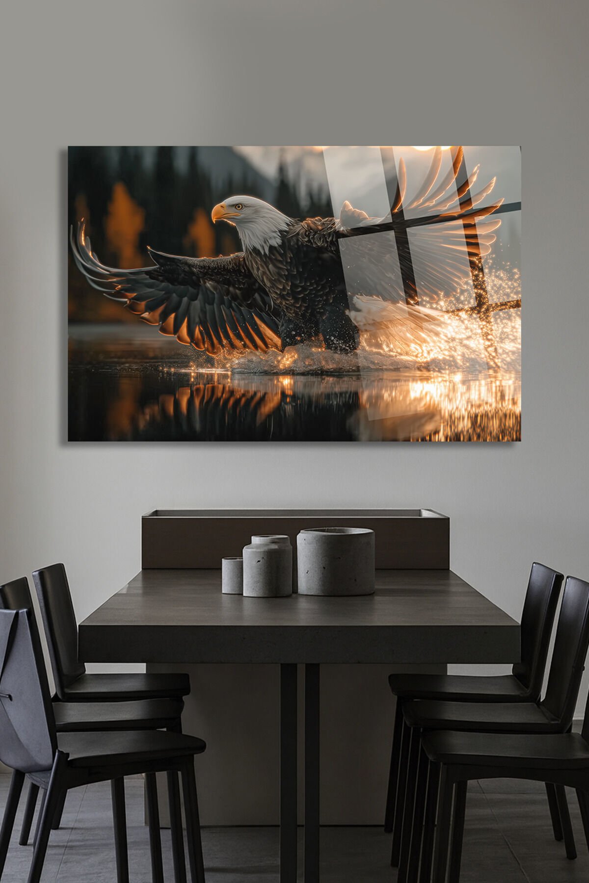 CANLI RENKLER SUYA İNİŞ YAPAN KARTAL TASARIMLI EV HEDİYESİ TABLO MODERN KIRILMAZ LÜKS CAM TABLO Siyah