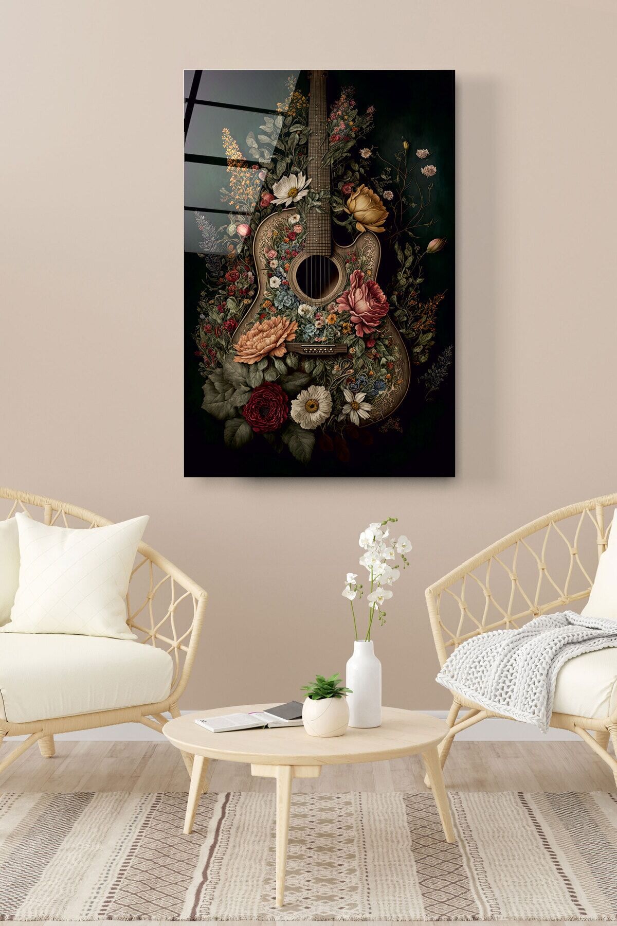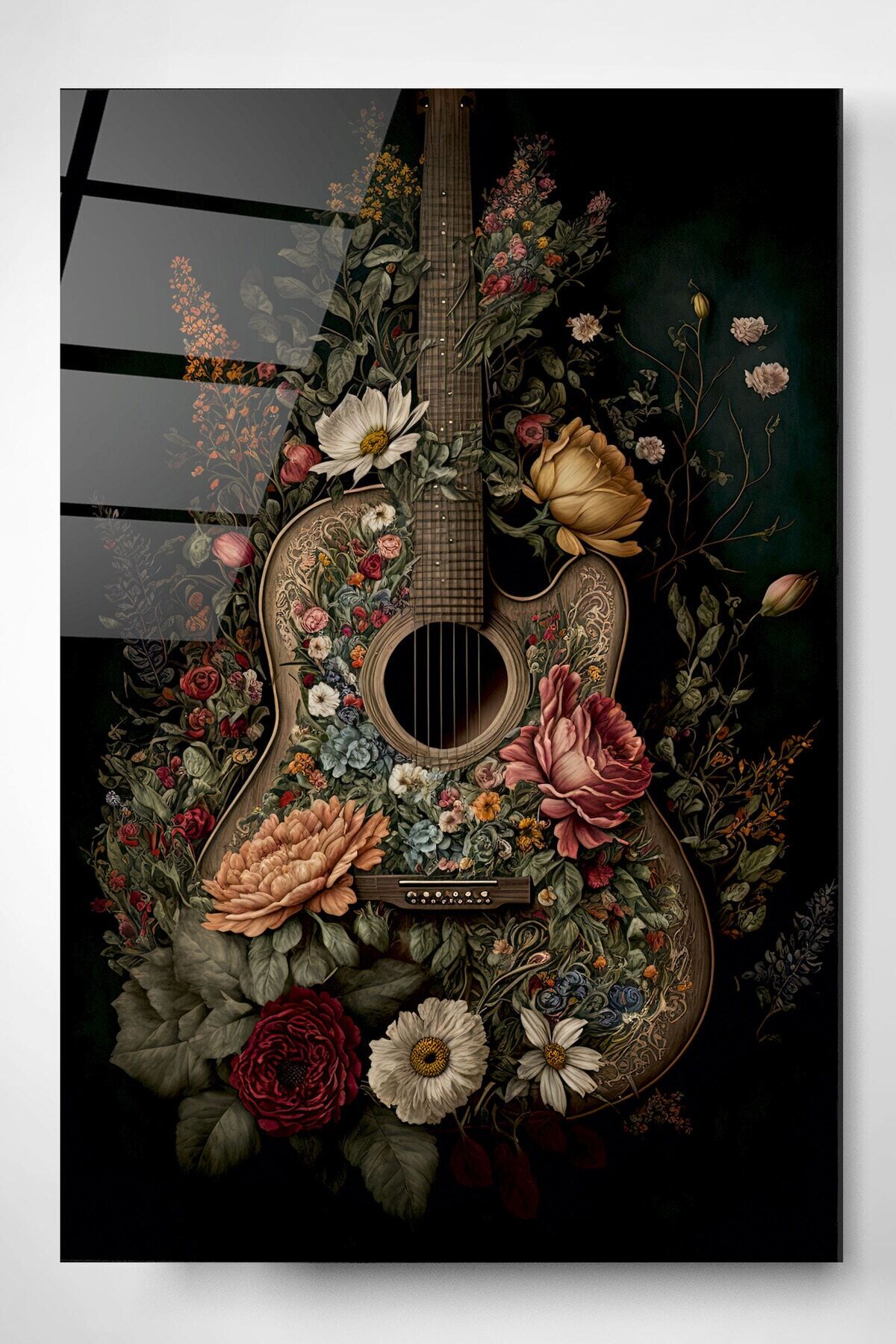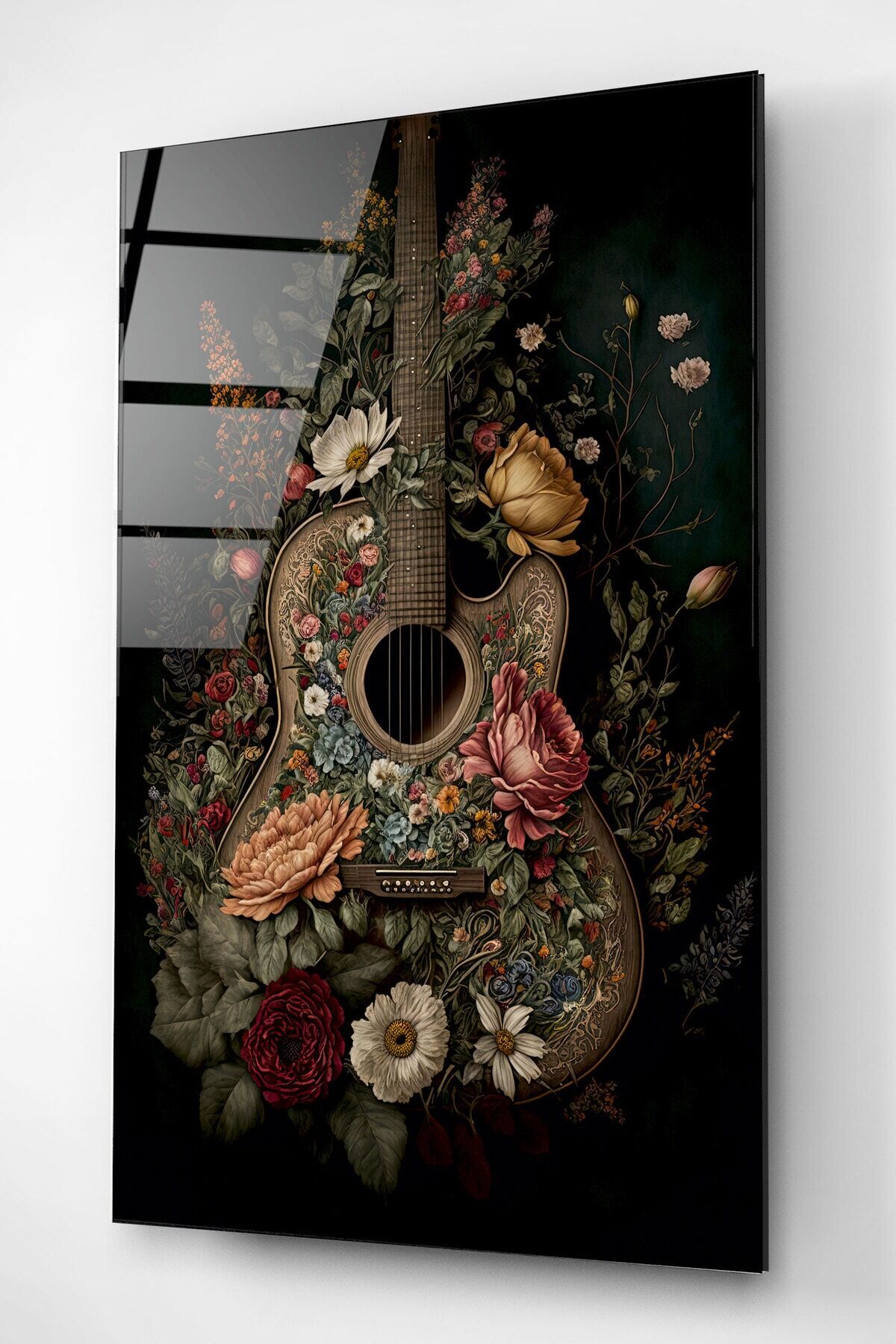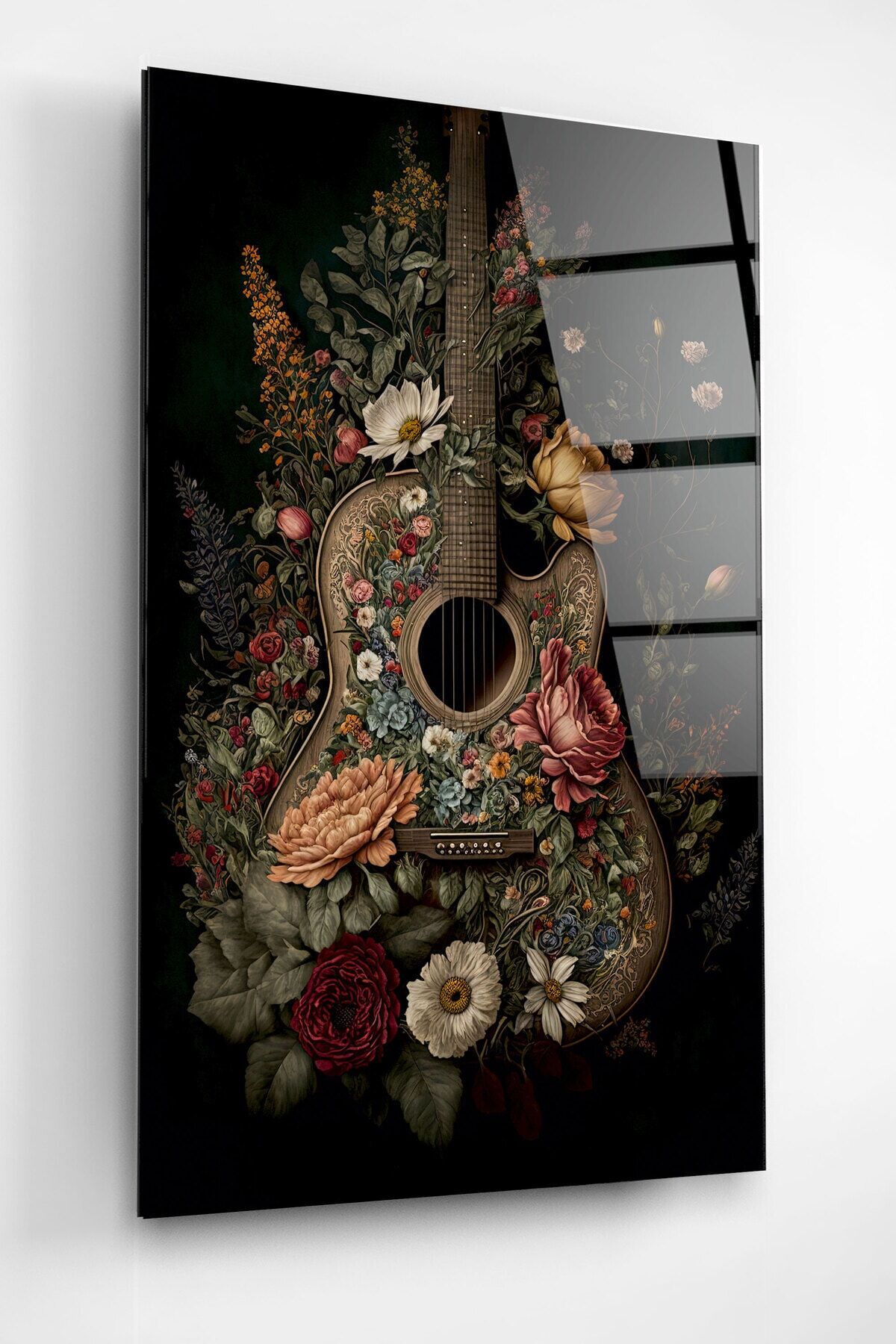 Çiçekli Gitar Cam Tablo, Dekoratif Cam Tablo