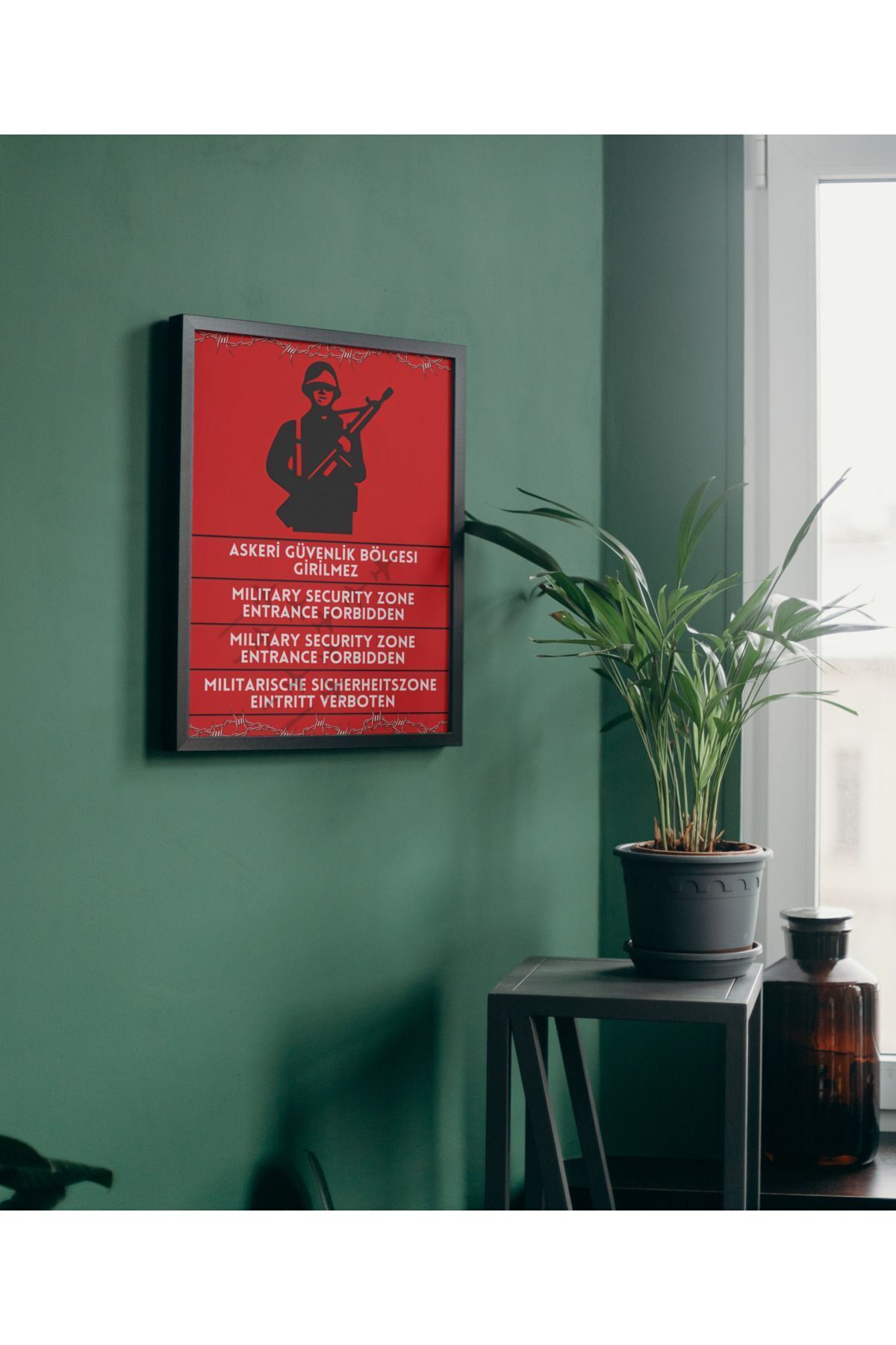 Çok Renkli - Askeri Güvenlik Bölgesi Girilmez Dekorasyon Poster Çerçeveli Yüksek Kaliteli Tasarım Tablo