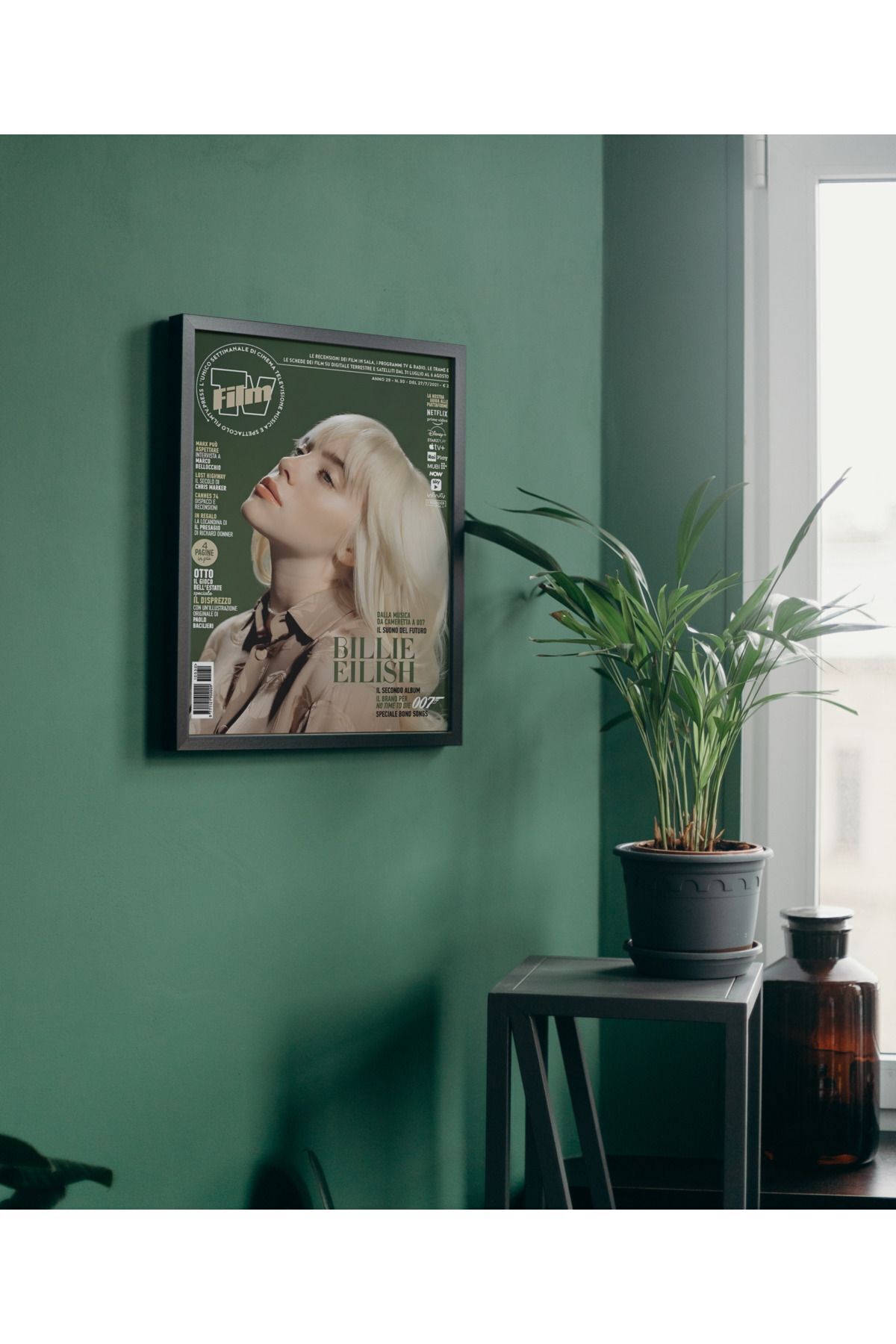 Çok Renkli - Billie Eilish Dergi Poster Çerçeveli Hediyelik Dekorasyon Tasarım Tablo