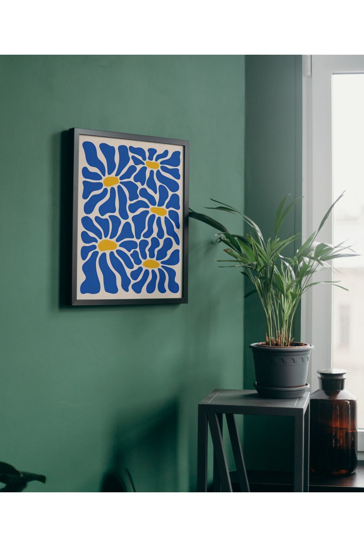Çok Renkli - Blue Flowers Mavi Çiçekler Ev Pinterest Poster Çerçeveli Yüksek Kaliteli Dekorasyon Tasarım Tablo