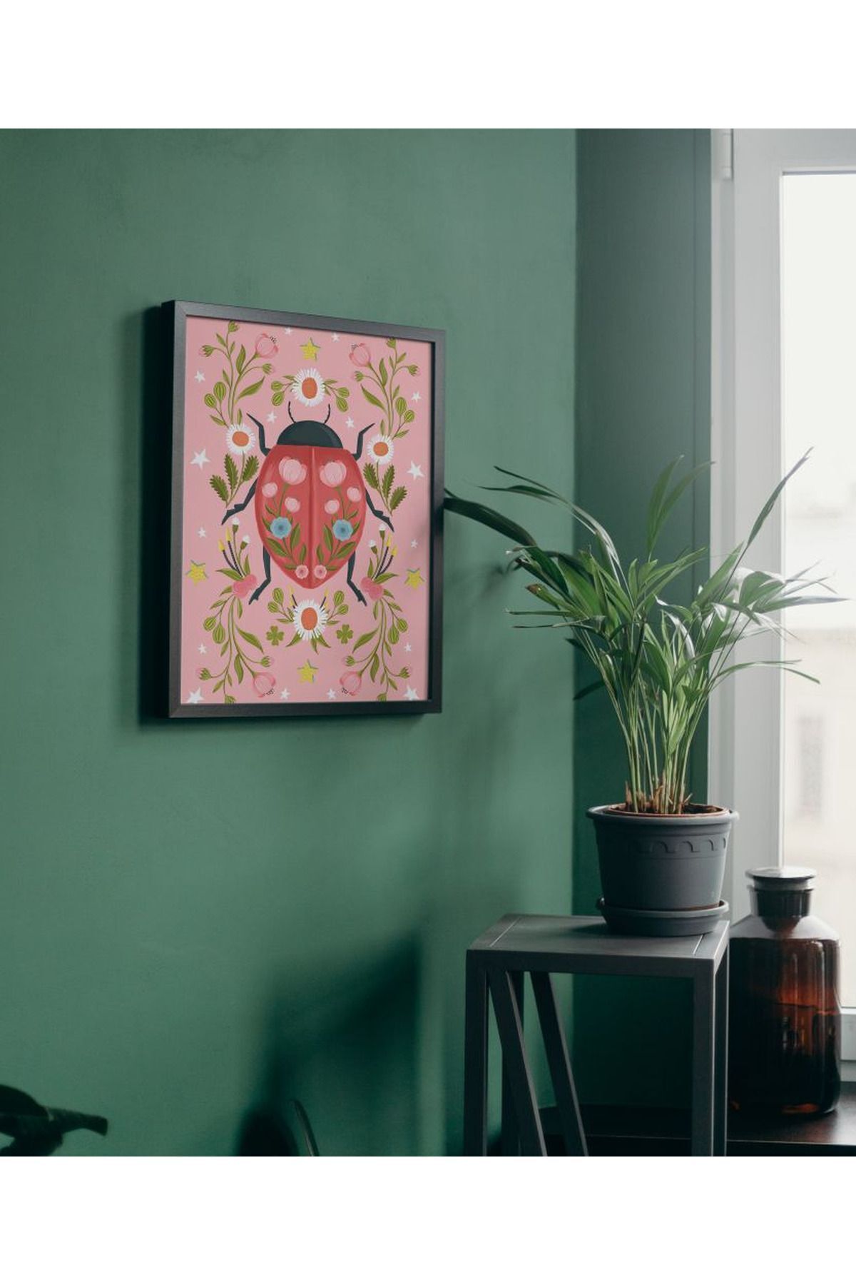 Çok Renkli - Etnik Desen Uğurböceği Bahar Festivali Kutlama Pinterest Hediyelik Poster Çerçeveli Sanatsal Tablo