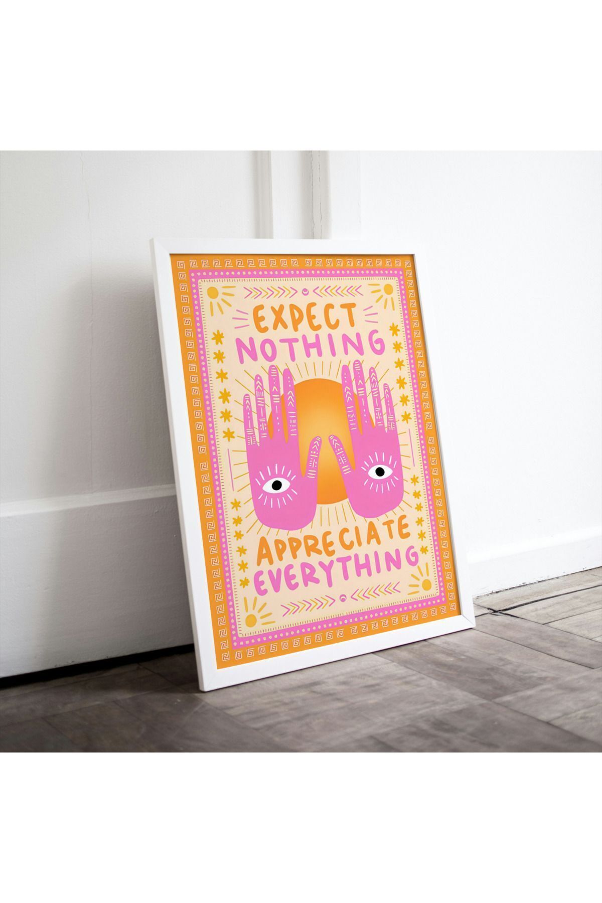 Çok Renkli - Expect Nothing Appreciate Everything Motivation Pinterest Etnik Poster Çerçeveli Sanatsal Tablo