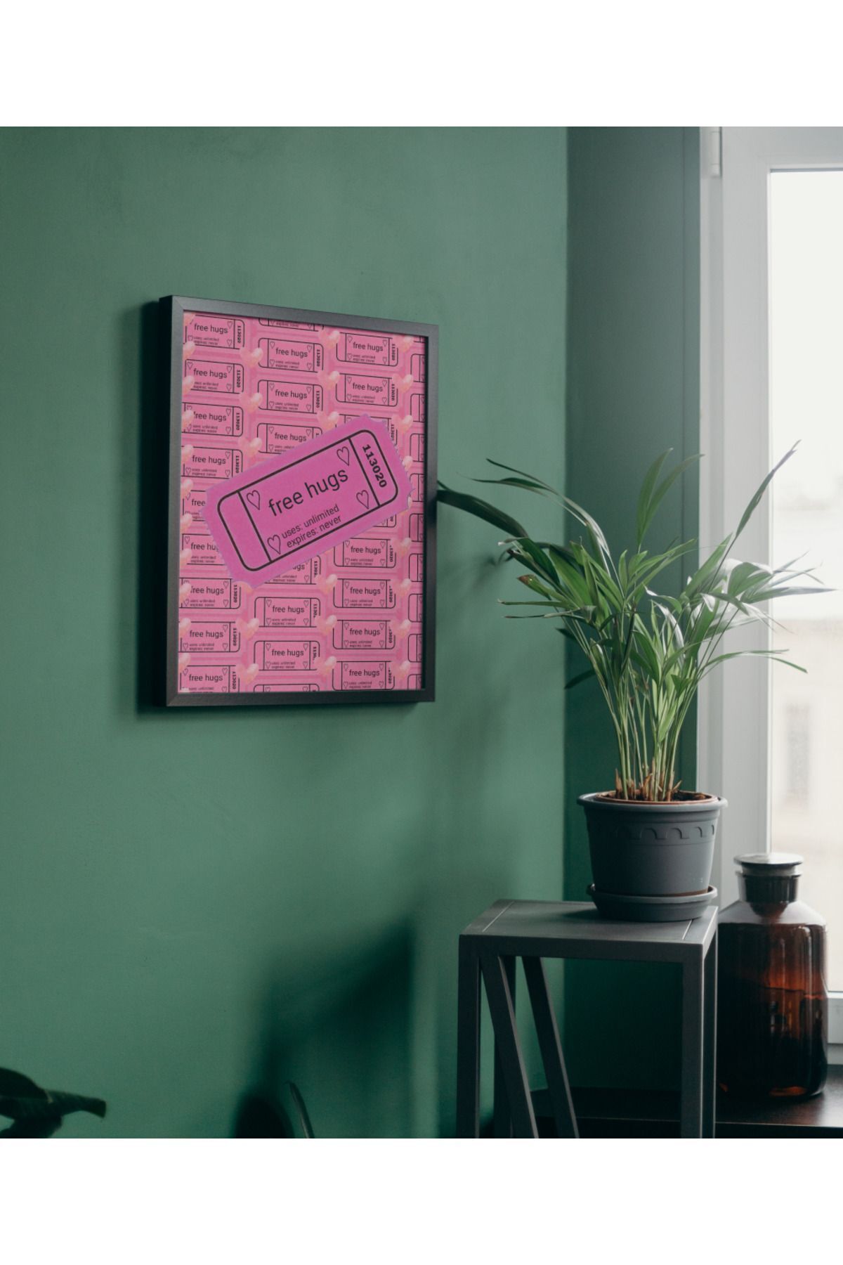 Çok Renkli - Free Hugs Ticket Sevgili Pinterest Poster Çerçeveli Hediyelik Dekorasyon Tasarım Tablo