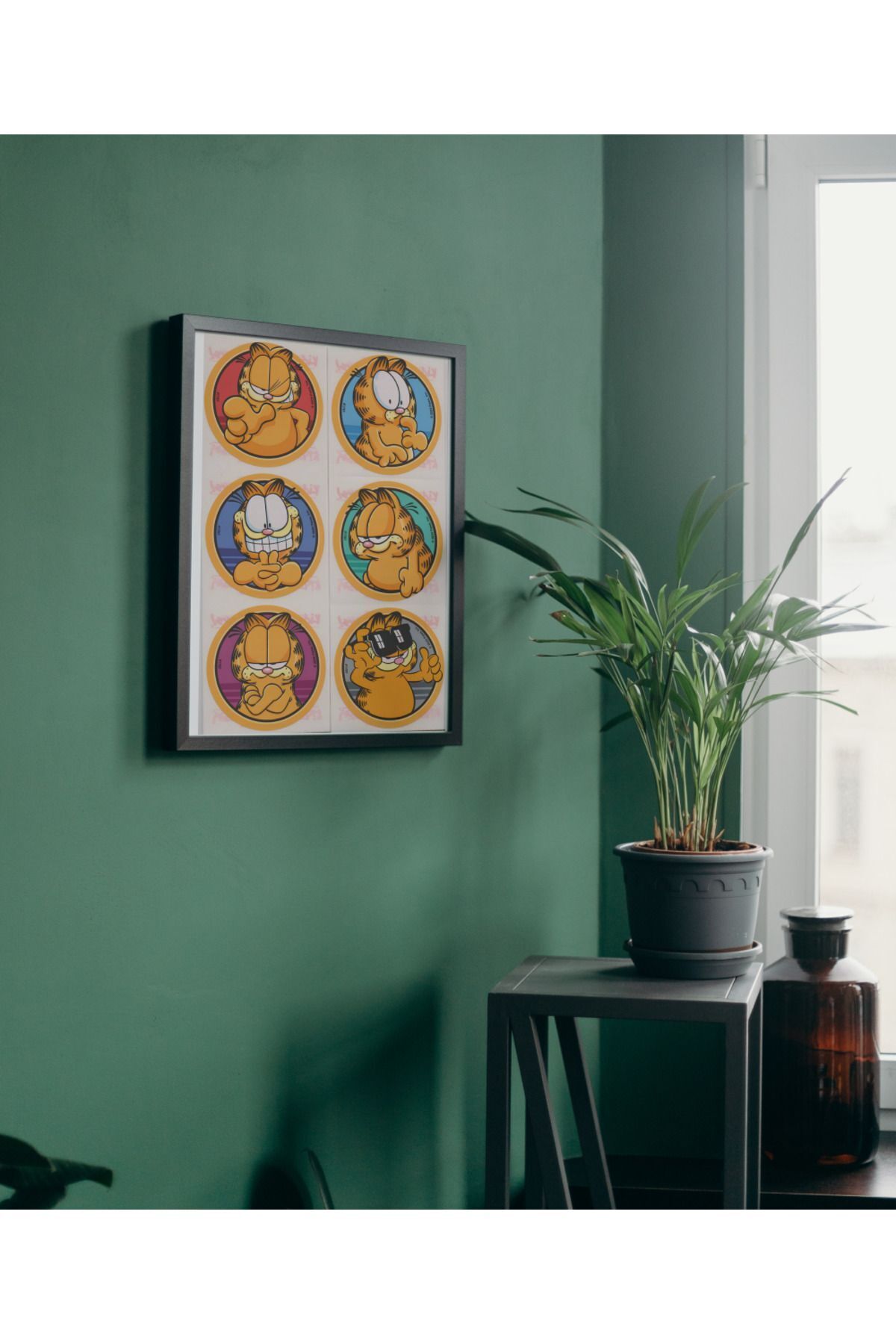 Çok Renkli - Garfield Emojileri Çizgi Film Pinterest Poster Çerçeveli Hediyelik Dekorasyon Tasarım Tablo