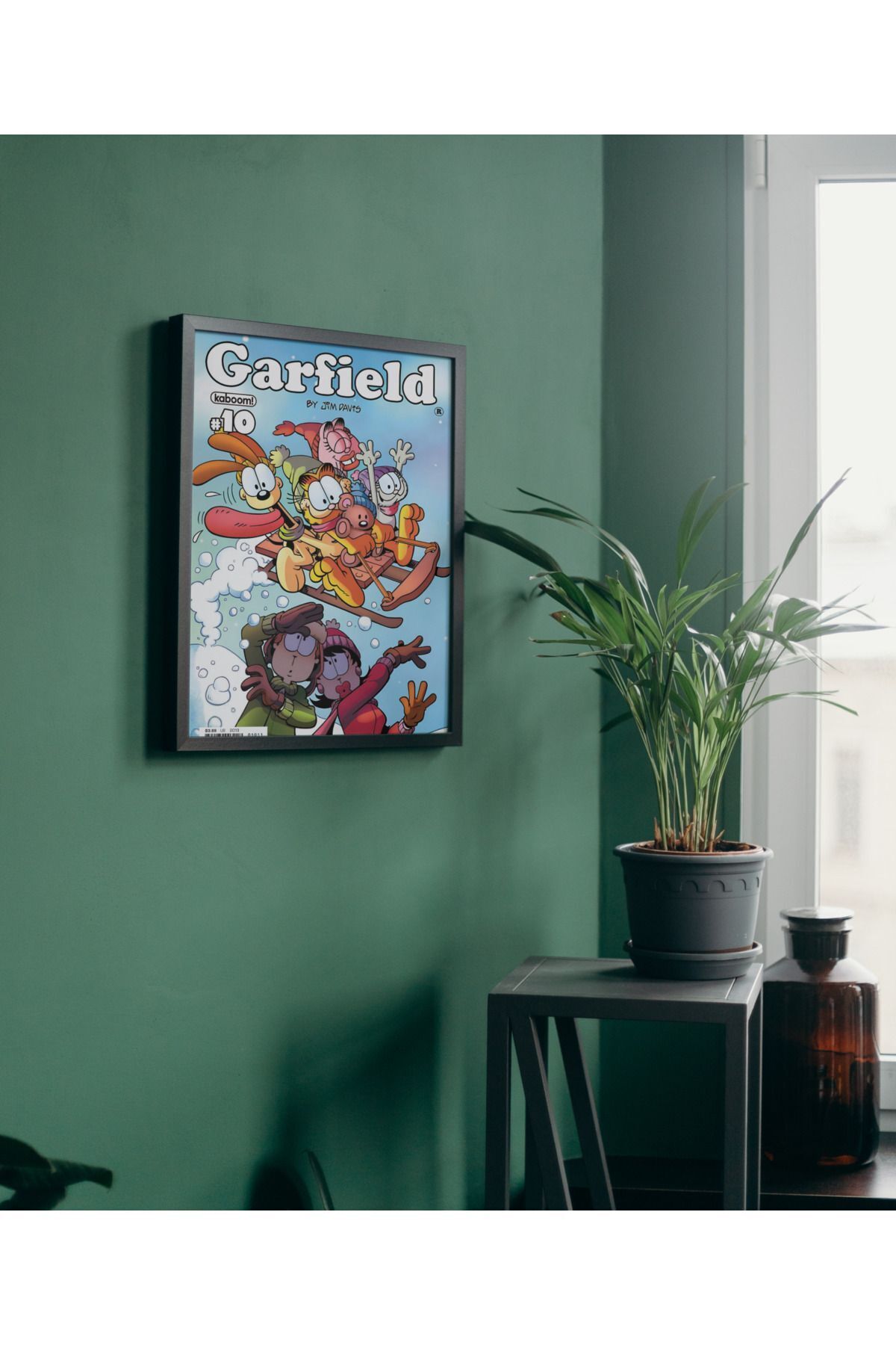 Çok Renkli - Garfield Yılbaşı Kızağı Noel Christmas Poster Çerçeveli Hediyelik Dekorasyon Tasarım Tablo