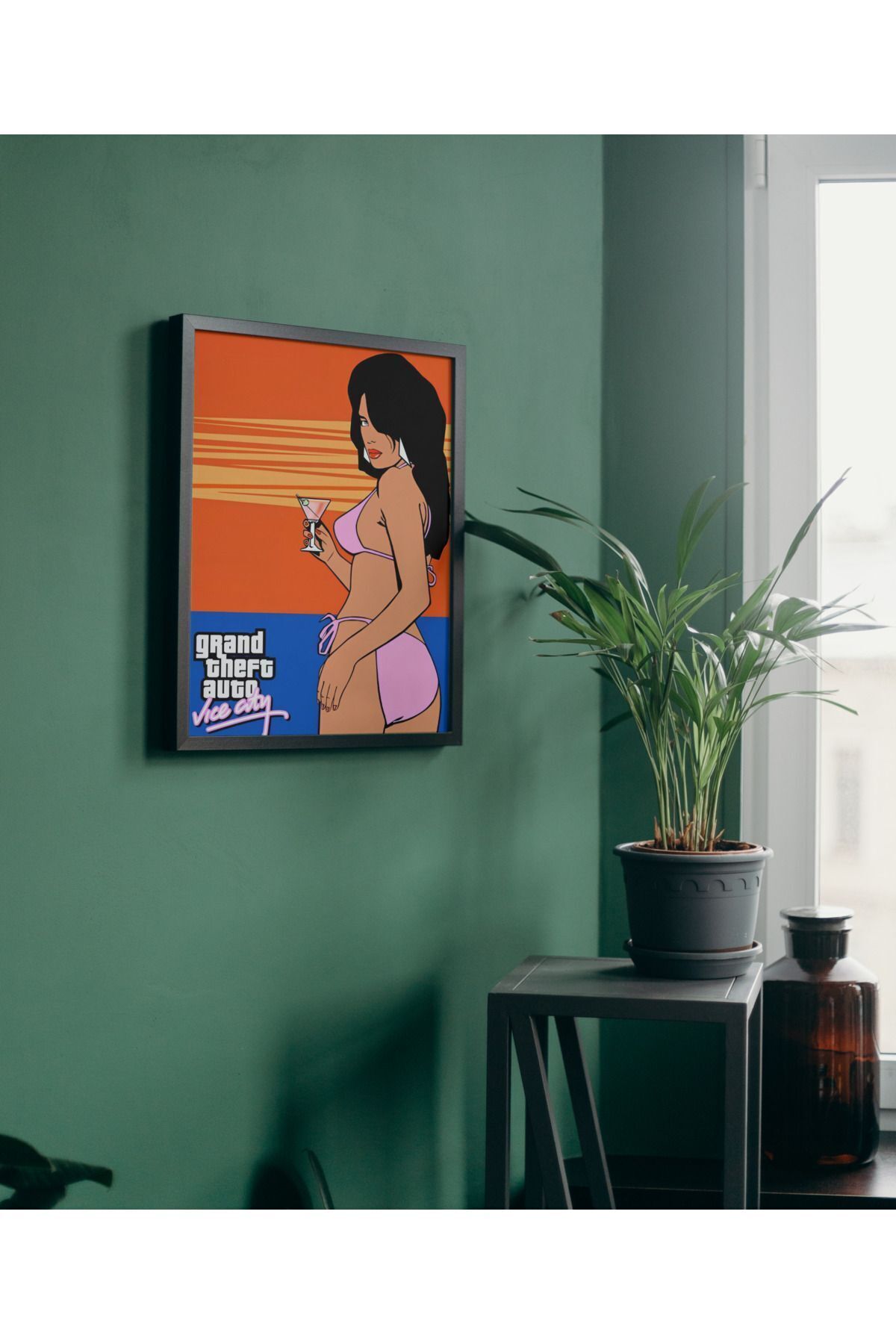 Çok Renkli - GTA Vice City Gün Batımı Poster Çerçeveli Yüksek Kaliteli Tasarım Tablo