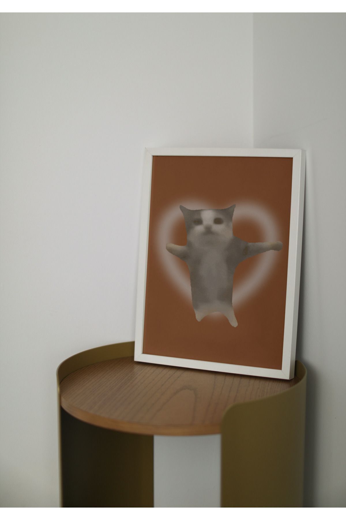 Çok Renkli - Happy Happy Cat Banana Cat Dekorasyon Çerçeveli Tasarım Poster Tablo PSTR-1132