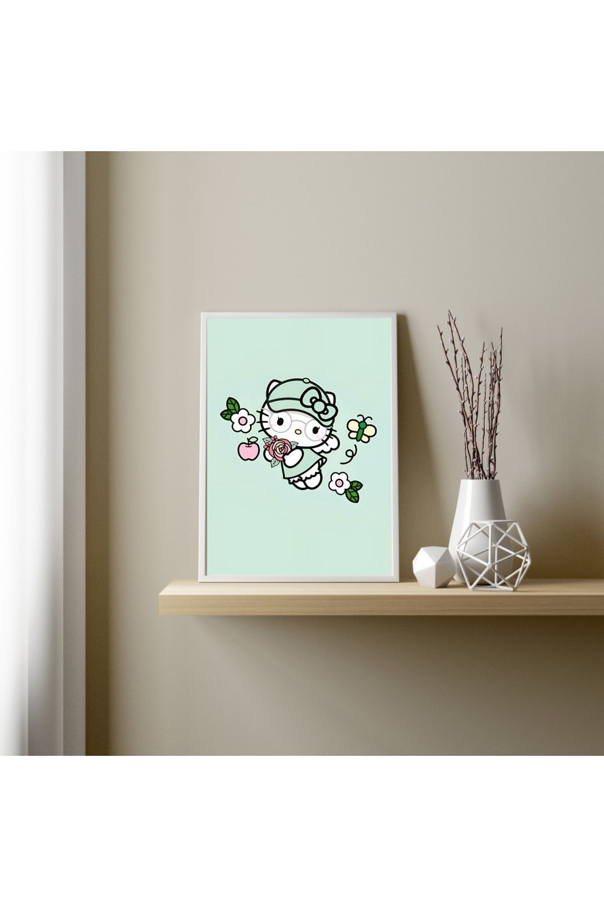 Çok Renkli - Hello Kitty Su Yeşili Pinterest Dekorasyon Poster Çerçeveli Yüksek Kaliteli Tasarım Tablo