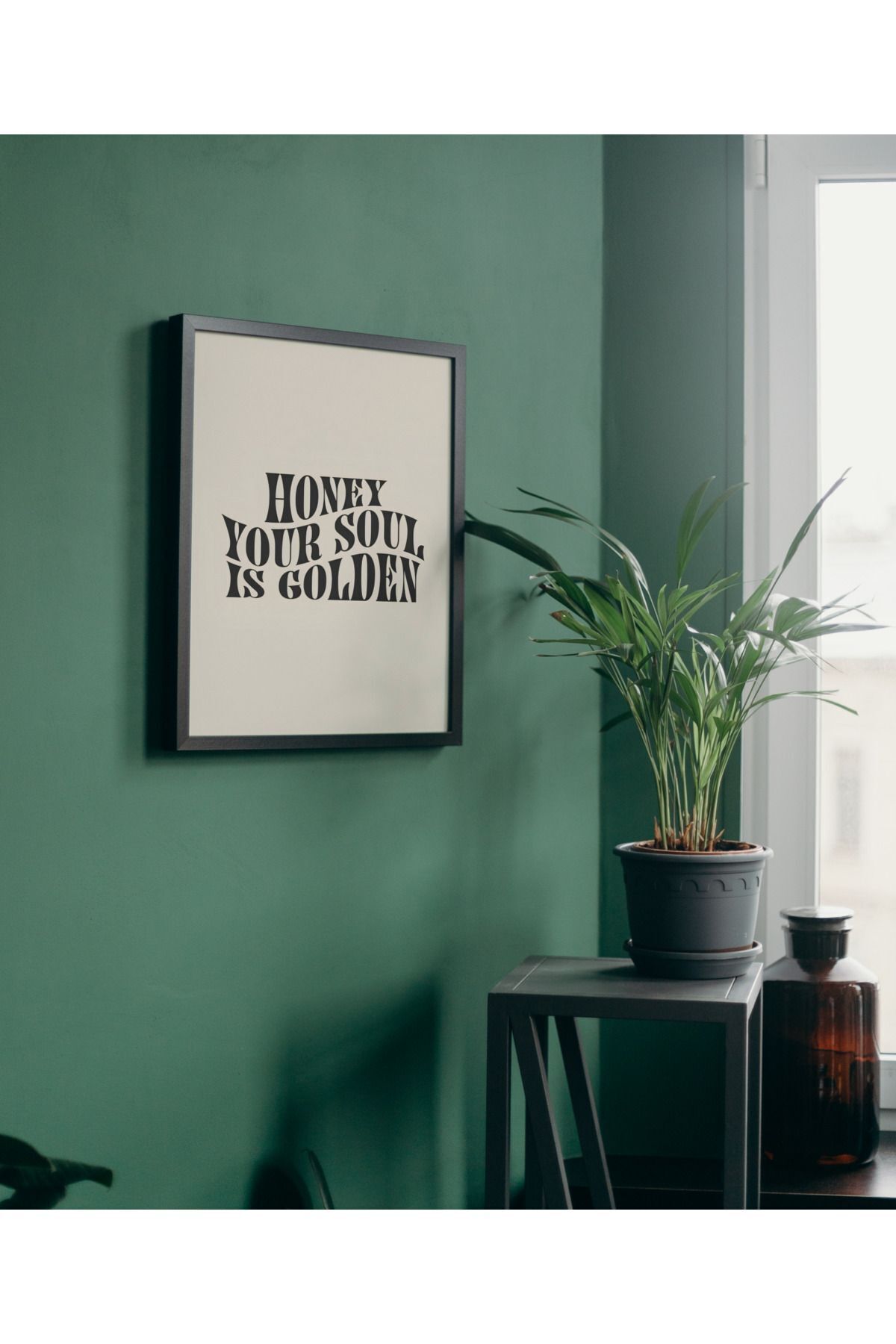 Çok Renkli - Honey Your Soul Golden Sevgililer Günü Valentines Hediyelik Poster Çerçeveli Sanatsal Tasarım Tablo