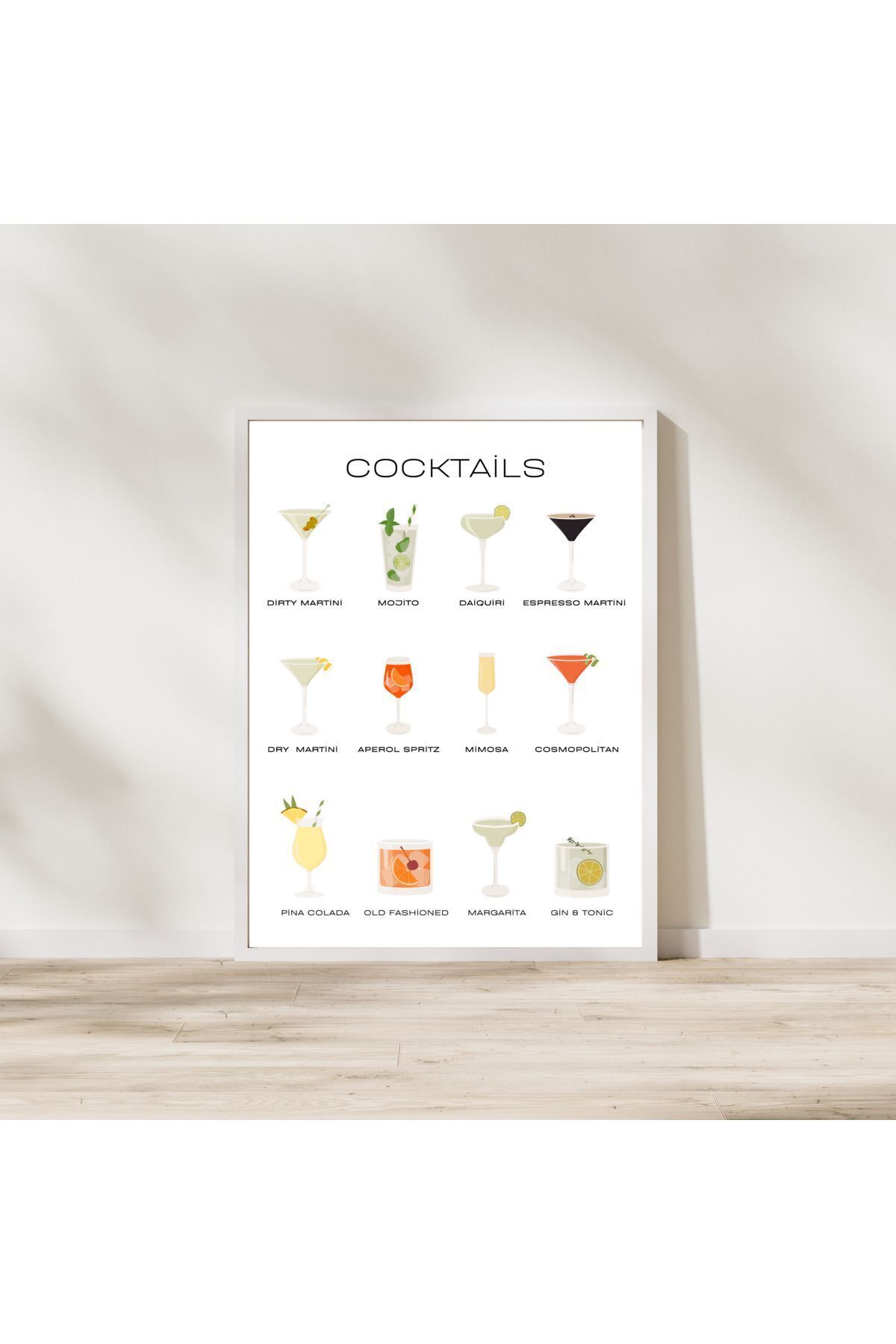 Çok Renkli - Kokteyller - Cocktails Pub Poster Çerçeveli Yüksek Kaliteli Tasarım Tablo