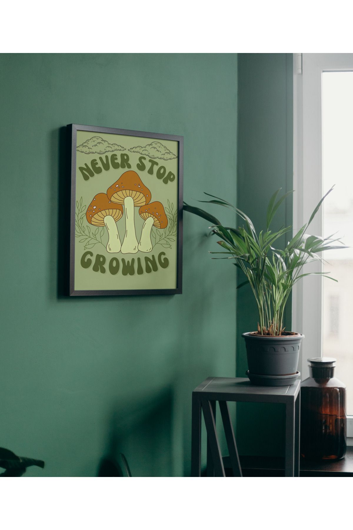 Çok Renkli - Never Stop Growing Yeşillendir Poster Çerçeveli Hediyelik Dekorasyon Tasarım Tablo