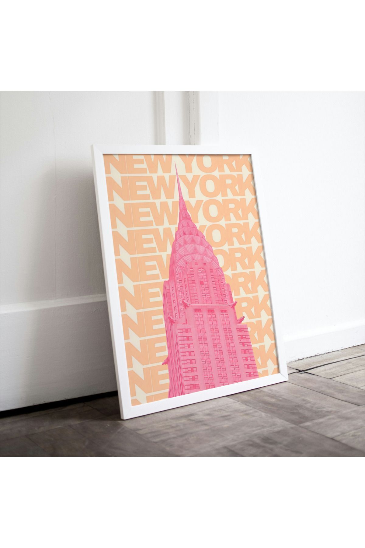 Çok Renkli - New York Pink City Şehirler Pinterest Poster Çerçeveli Yüksek Kalite Dekorasyon Tasarım Tablo