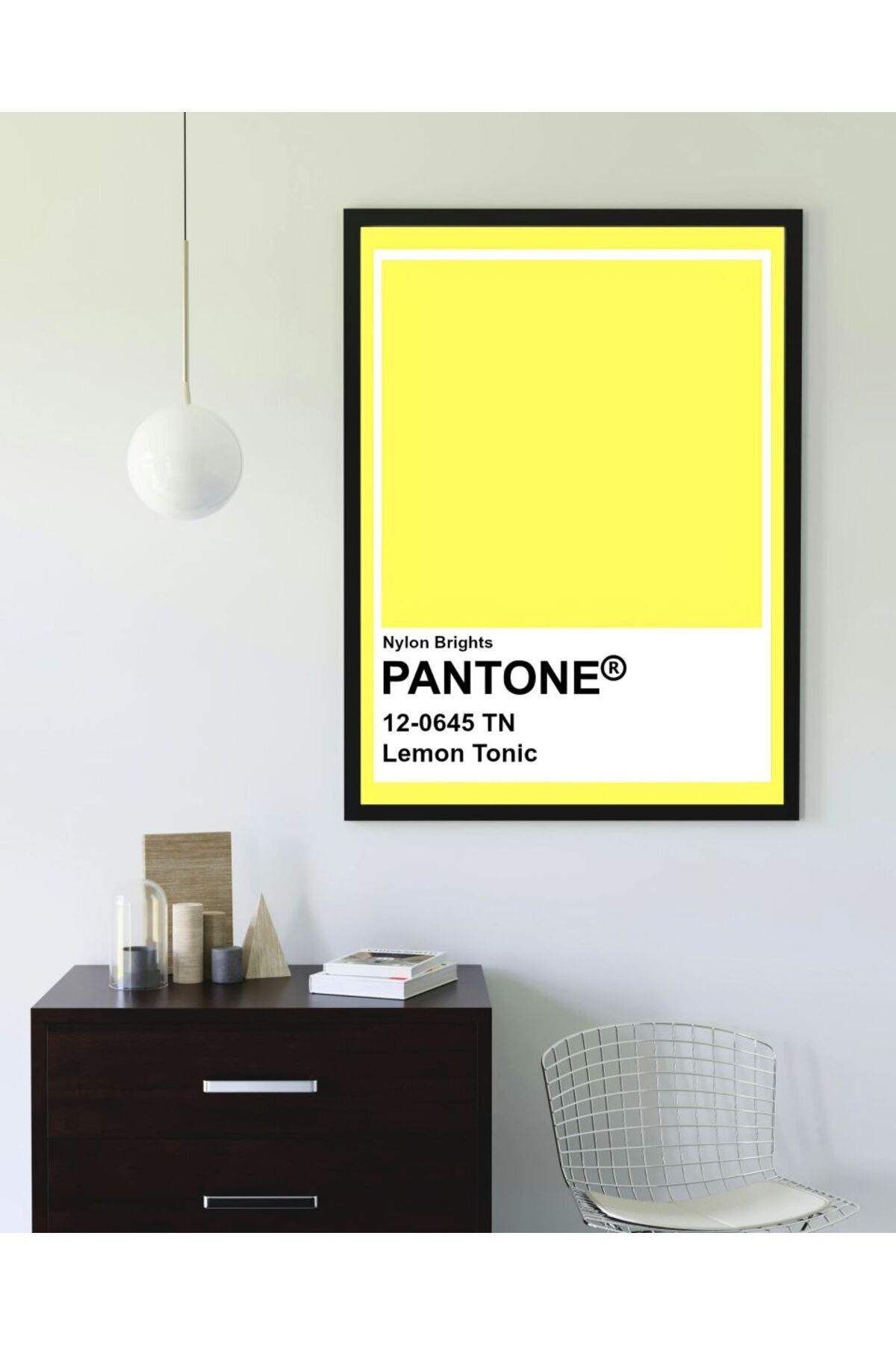 Çok Renkli - Pantone Lemon Tonic Yellow Pinterest Poster Çerçeveli Sanatsal Tasarım Tablo