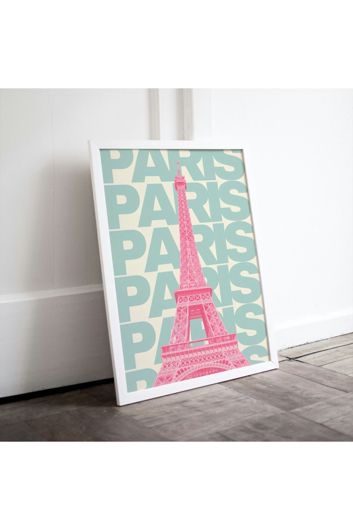 Çok Renkli - Paris Green Pink City Şehirler Pinterest Poster Çerçeveli Yüksek Kalite Dekorasyon Tasarım Tablo
