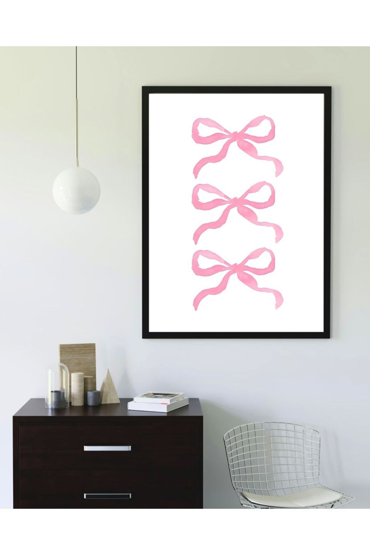 Çok Renkli - Pembe Kurdele Pink Ribbon Pinterest Poster Çerçeveli Sanatsal Tasarım Tablo