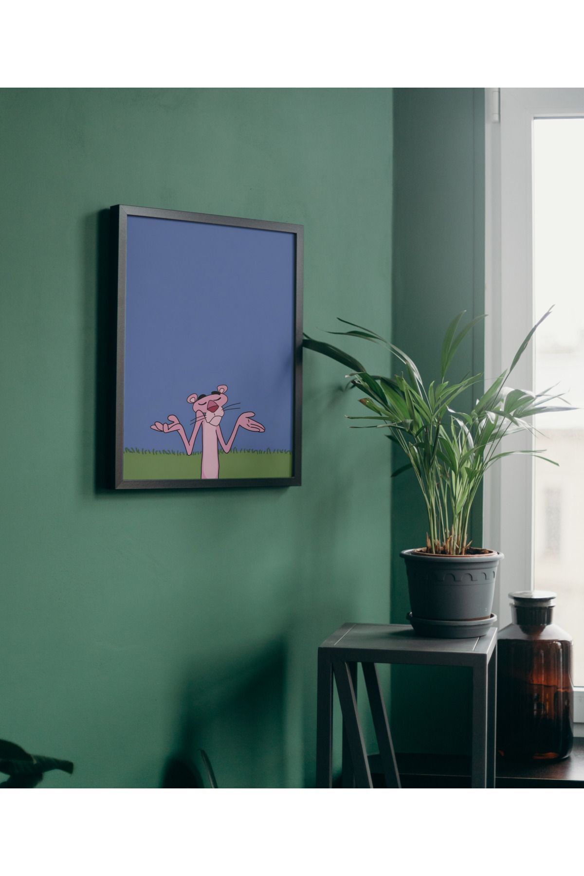 Çok Renkli - Pembe Panter Poster Çerçeveli Hediyelik Dekorasyon Tasarım Tablo