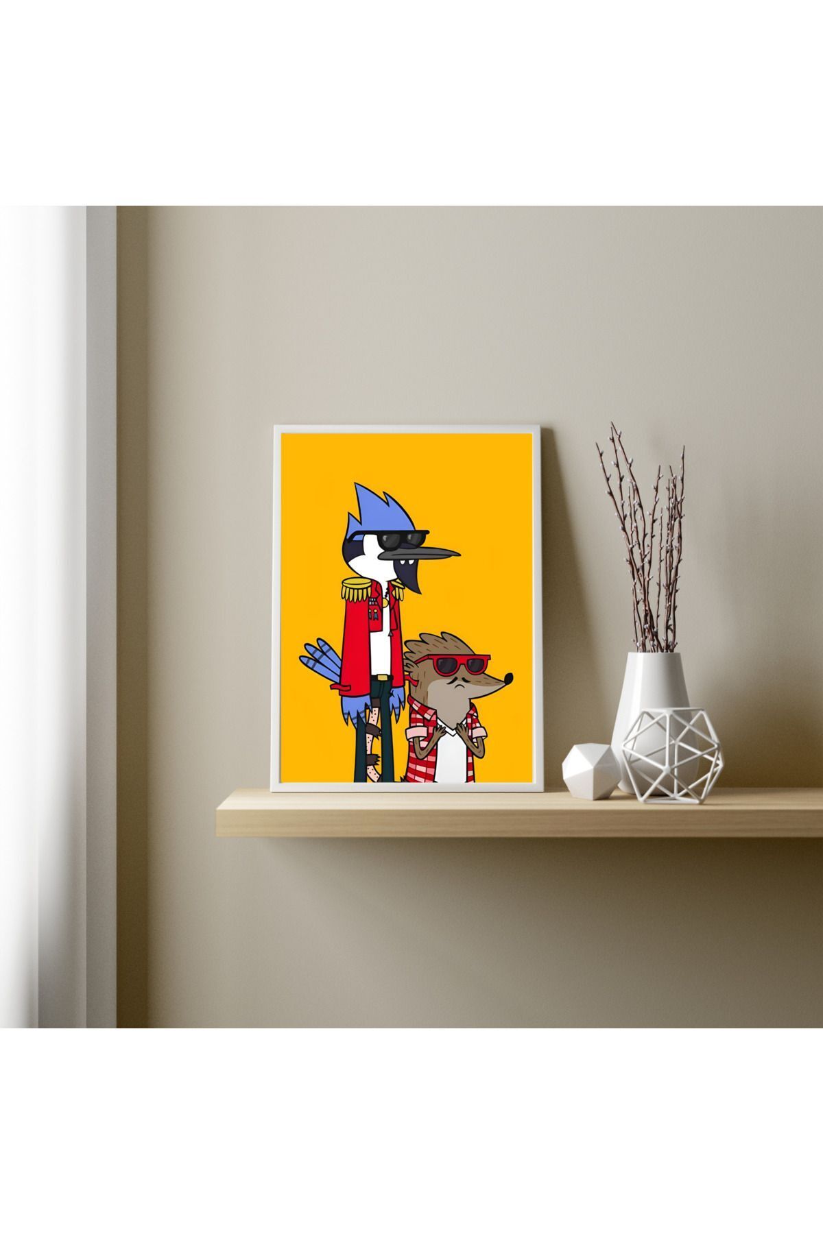 Çok Renkli - Regular Show Mordecai Ve Rigby Tasarım Dekorasyon Poster Çerçeveli Yüksek Kaliteli Tasarım Tablo