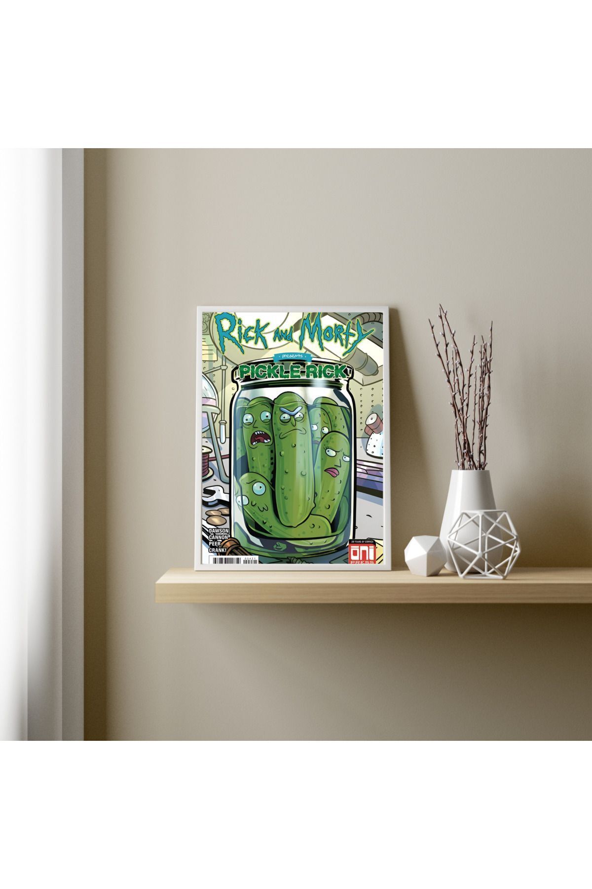 Çok Renkli - Rick And Morty Pickle Rick Tasarım Dekorasyon Poster Çerçeveli Yüksek Kaliteli Tasarım Tablo