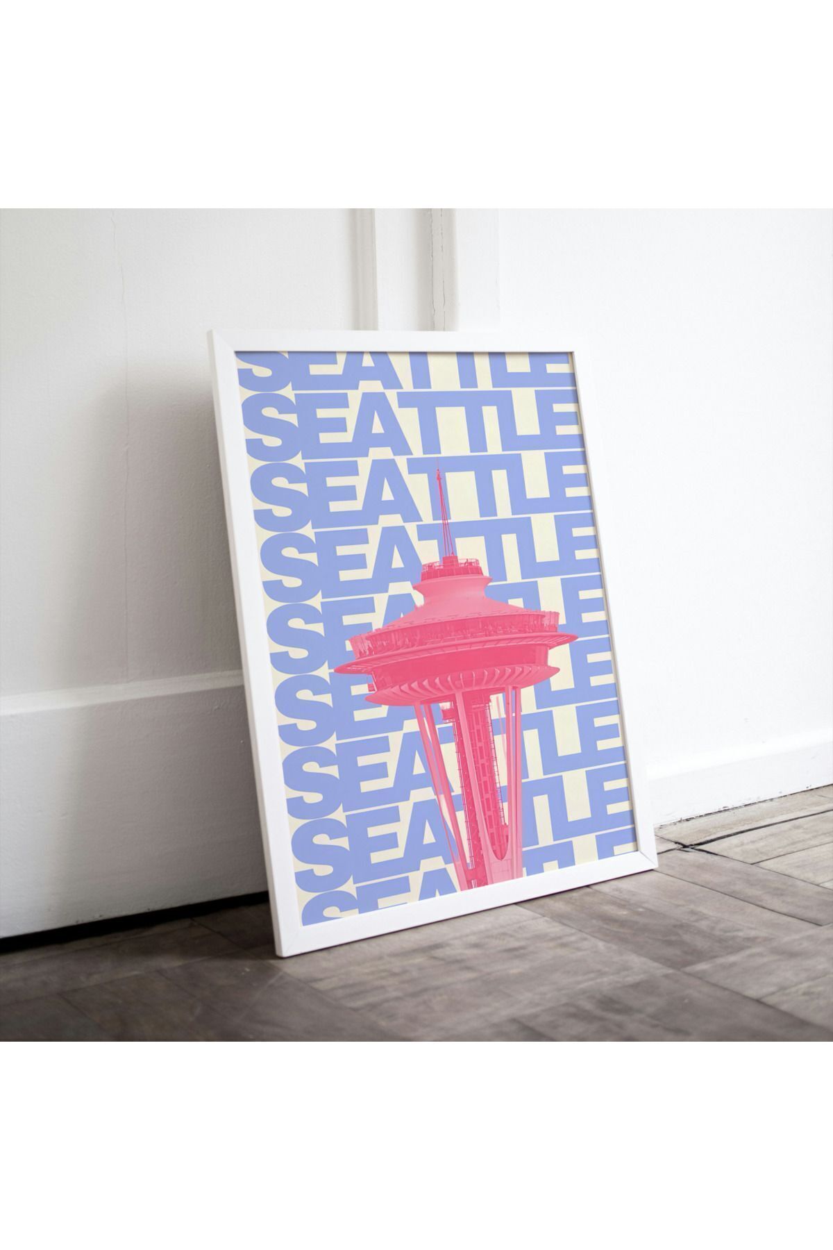 Çok Renkli - Seattle Pink City Şehirler Pinterest Poster Çerçeveli Yüksek Kalite Dekorasyon Tasarım Tablo
