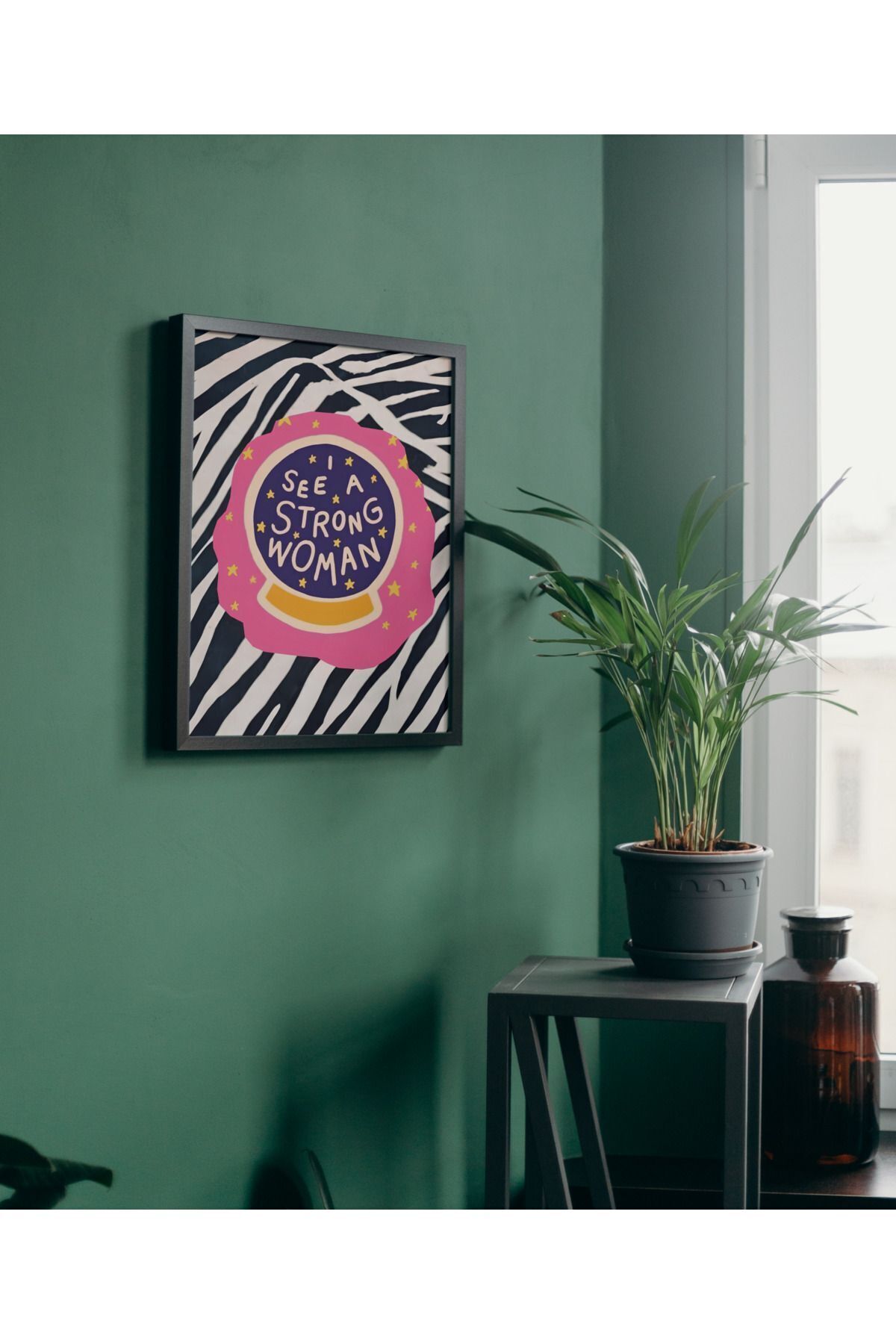 Çok Renkli - Sevgililer Günü Strong Woman Güçlü Kadın Hediyelik Poster Çerçeveli Sanatsal Tasarım Tablo