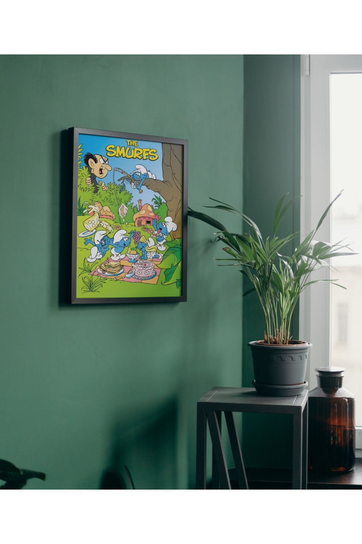 Çok Renkli - Şirinler - Smurfs Dekorasyon Çerçeveli Yüksek Kaliteli Tasarım Poster Tablo