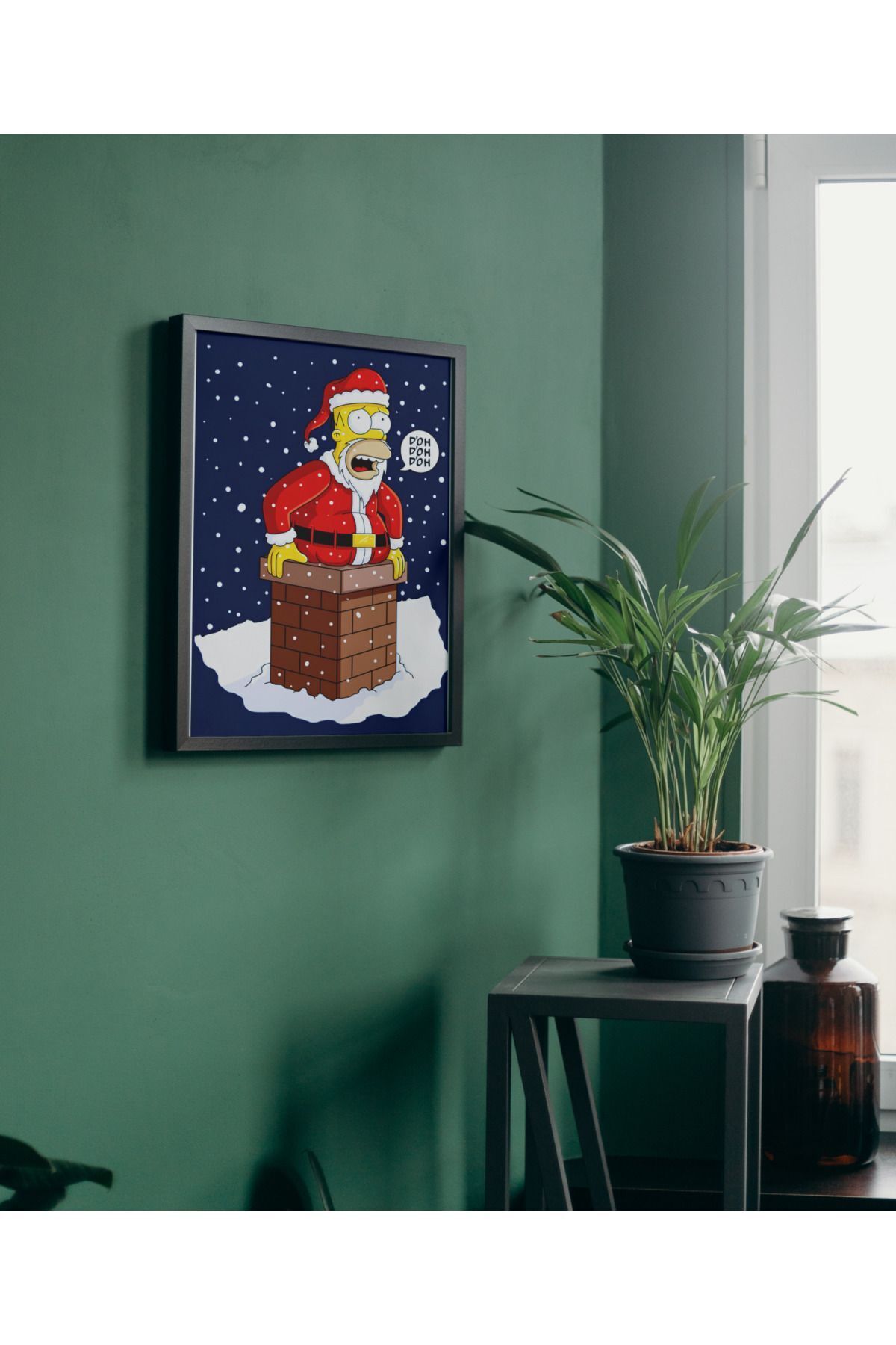 Çok Renkli - The Simpsons Noel Yılbaşı Christmas Poster Çerçeveli Hediyelik Dekorasyon Tasarım Tablo