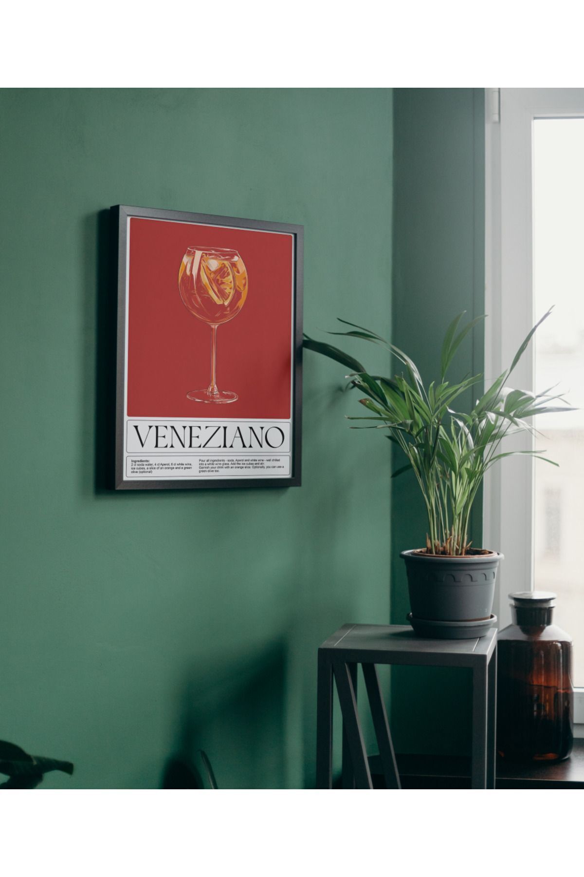 Çok Renkli - Veneziano Kokteyl Alkol İçki Poster Çerçeveli Hediyelik Dekorasyon Tasarım Tablo