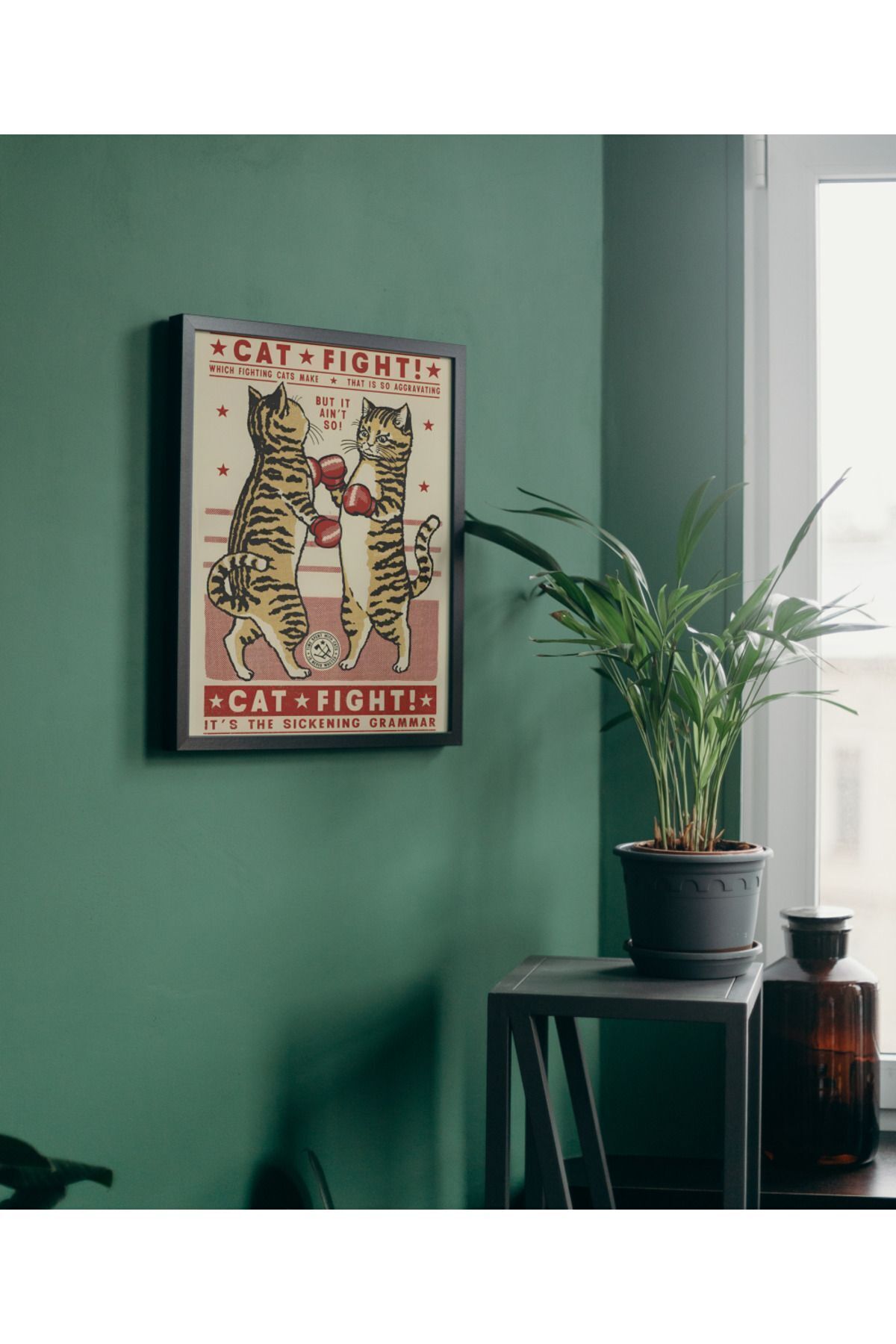 Çok Renkli - Vintage Pinterest Cat Fight Kedi Kavgası Poster Çerçeveli Yüksek Kaliteli Dekorasyon Tasarım Tablo