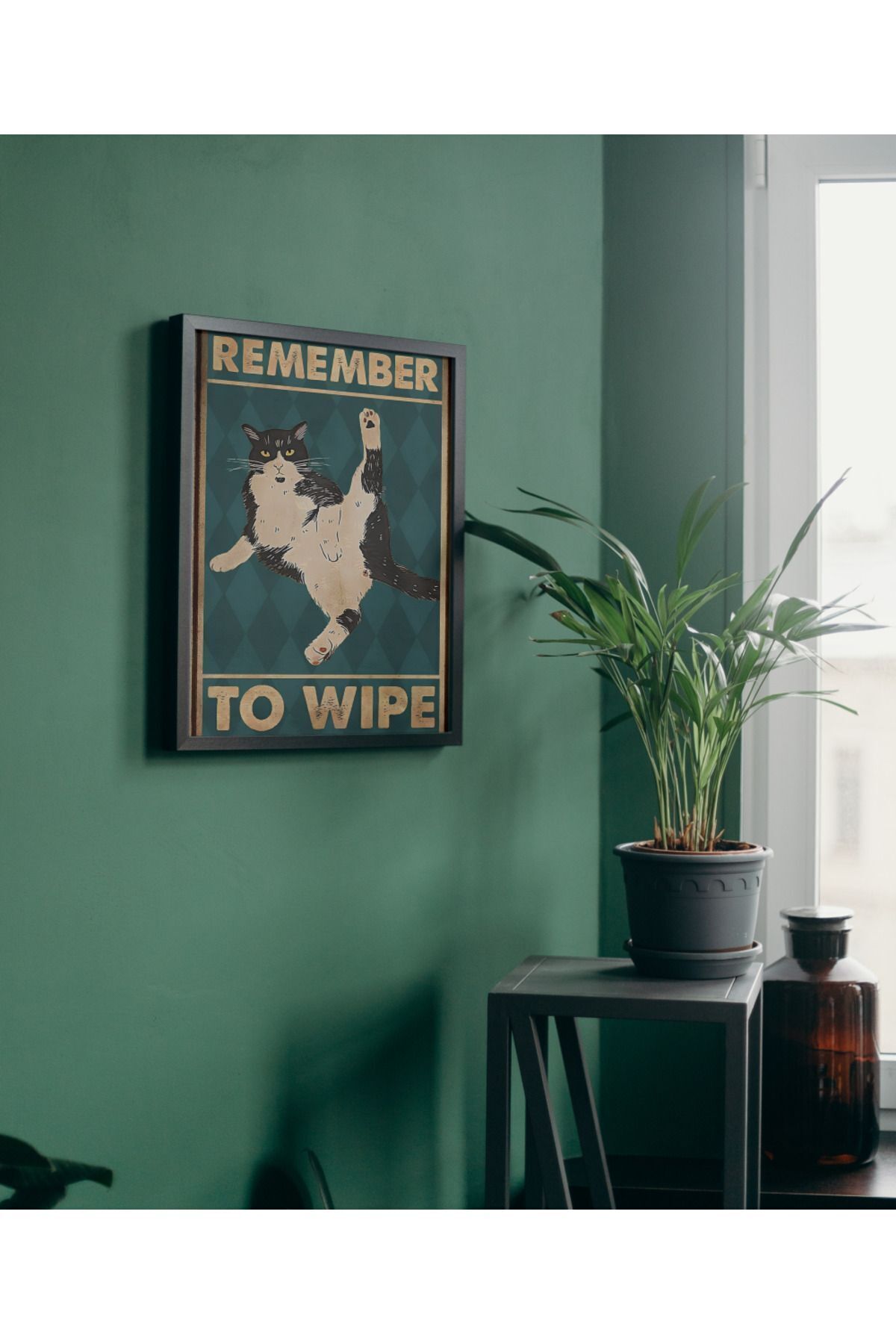 Çok Renkli - Vintage Pinterest Remember To Wipe Cat Poster Çerçeveli Yüksek Kaliteli Dekorasyon Tasarım Tablo