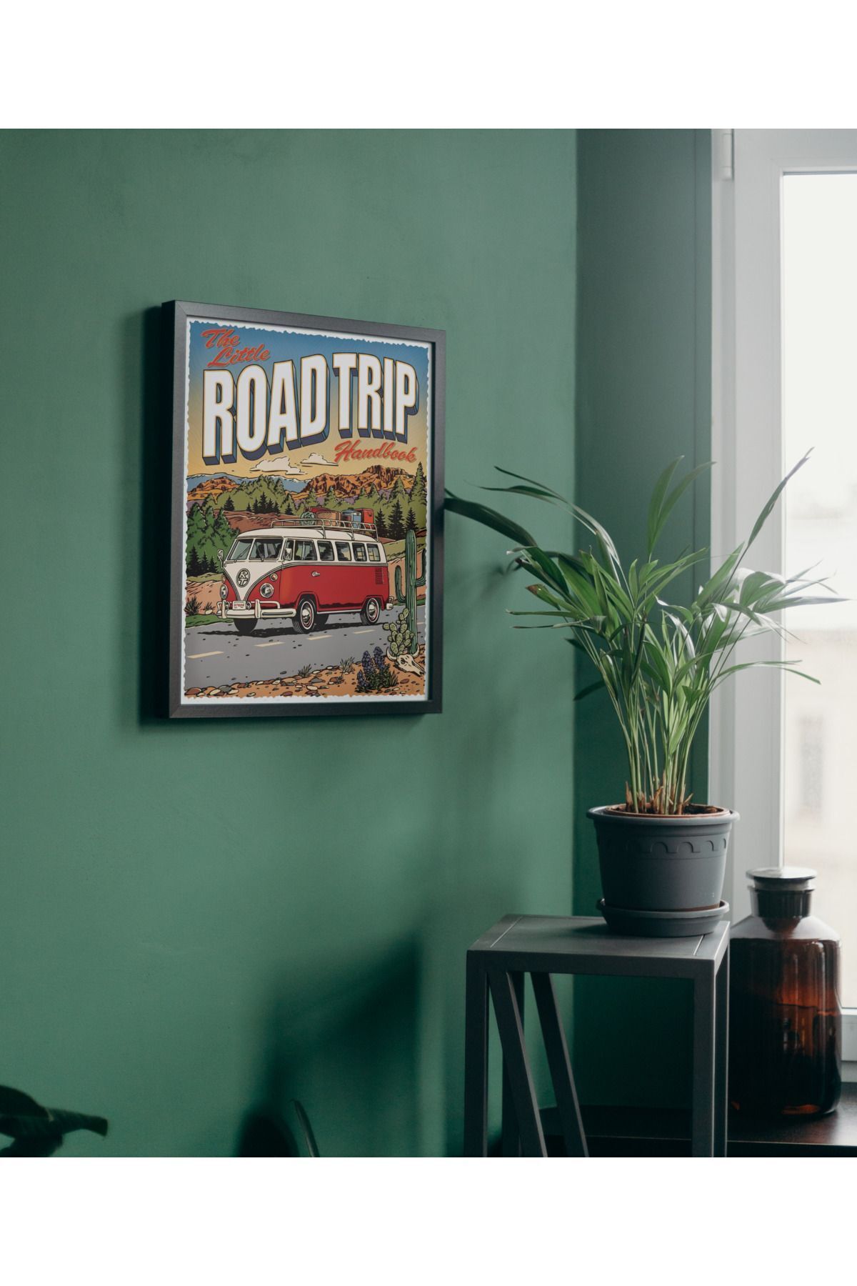 Çok Renkli - Vintage Pinterest Road Trip Karavan Poster Çerçeveli Yüksek Kaliteli Tasarım Tablo