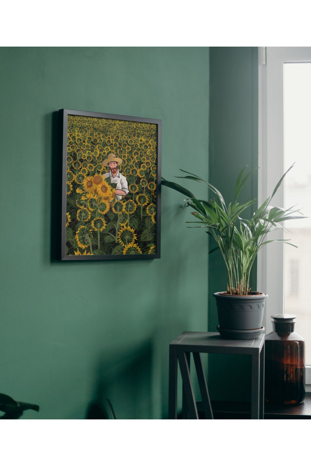 Çok Renkli - Vintage Pinterest Van Gogh Ve Ayçiçekleri Poster Çerçeveli Yüksek Kaliteli Dekorasyon Tasarım Tablo