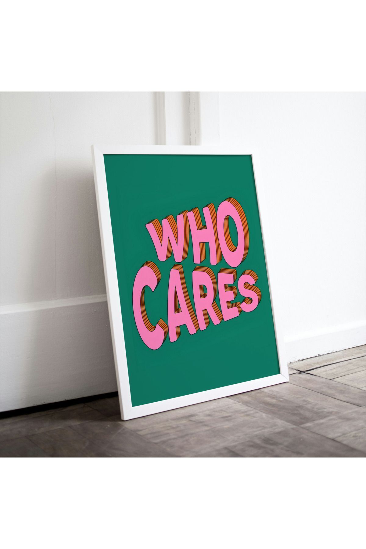Çok Renkli - Who Cares Pinterest Motivation Dekorasyon Hediyelik Poster Çerçeveli Sanatsal Tasarım Tablo