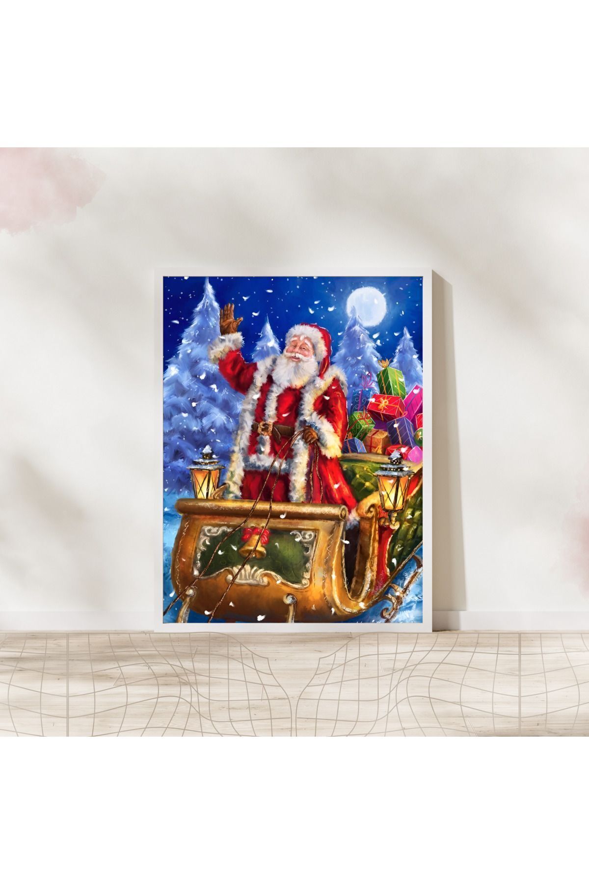 Çok Renkli - Yılbaşı Kızağı Noel Baba Merry Christmas Pinterest Poster Çerçeveli Yüksek Kaliteli Tasarım Tablo
