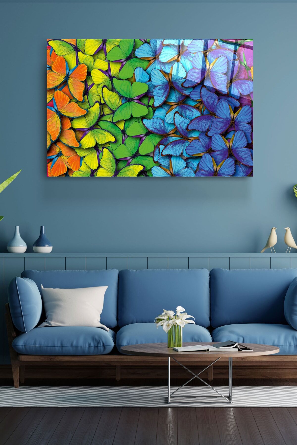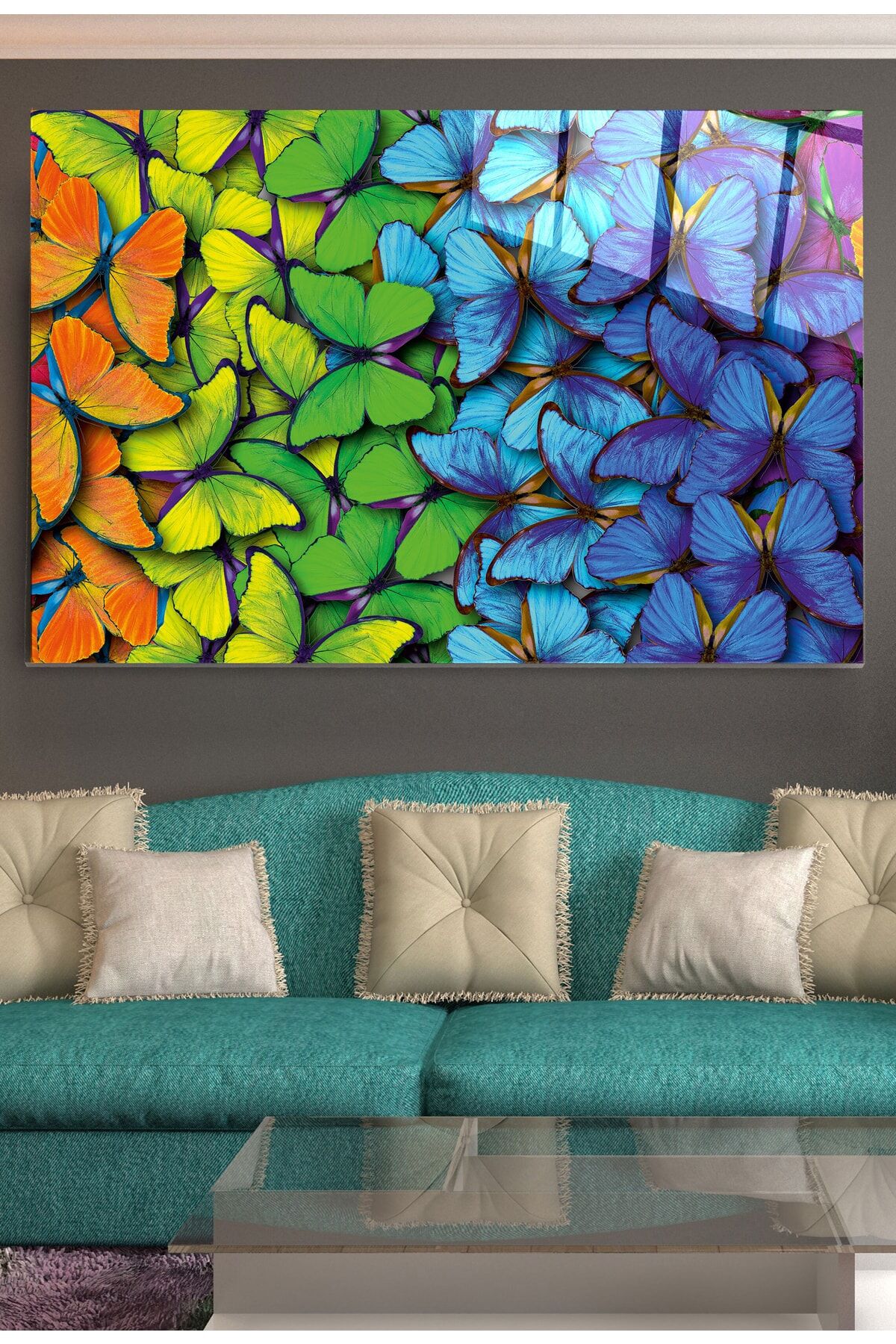 Colorful Butterflies Cam Tablo, Dekoratif Cam Tablo