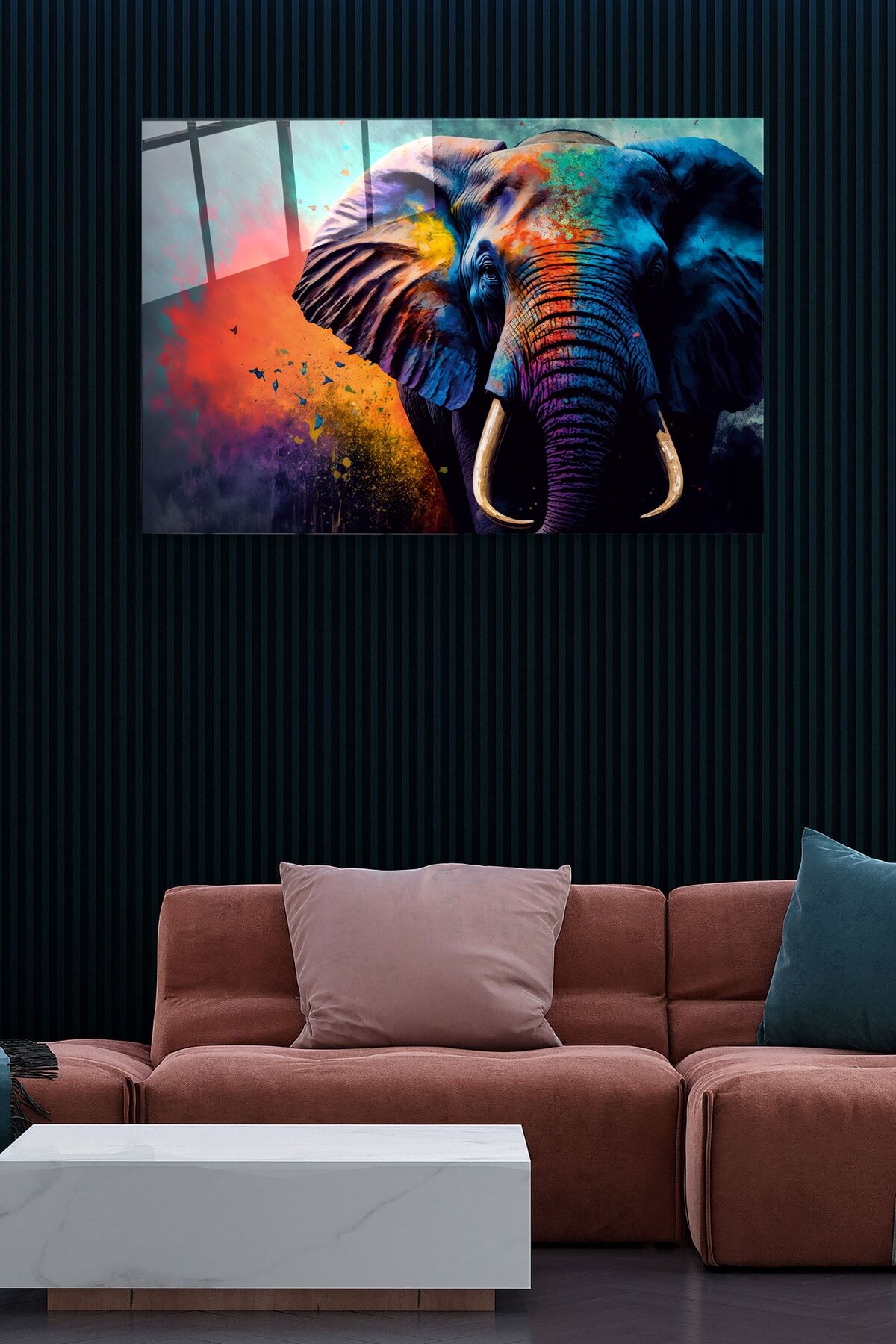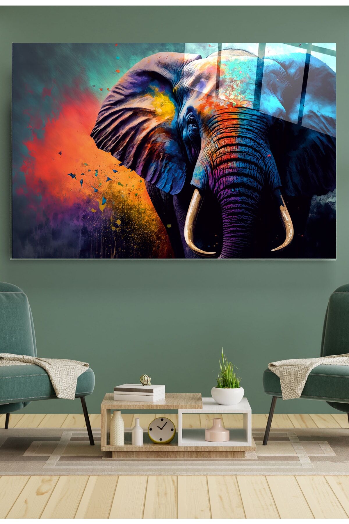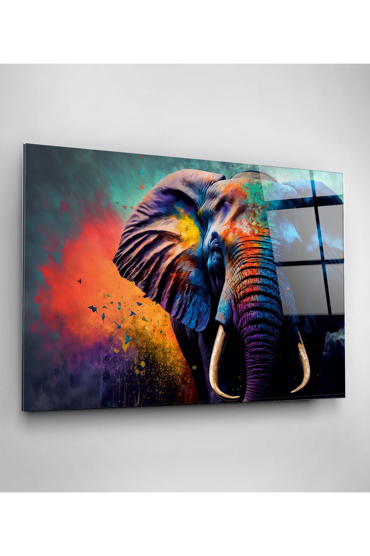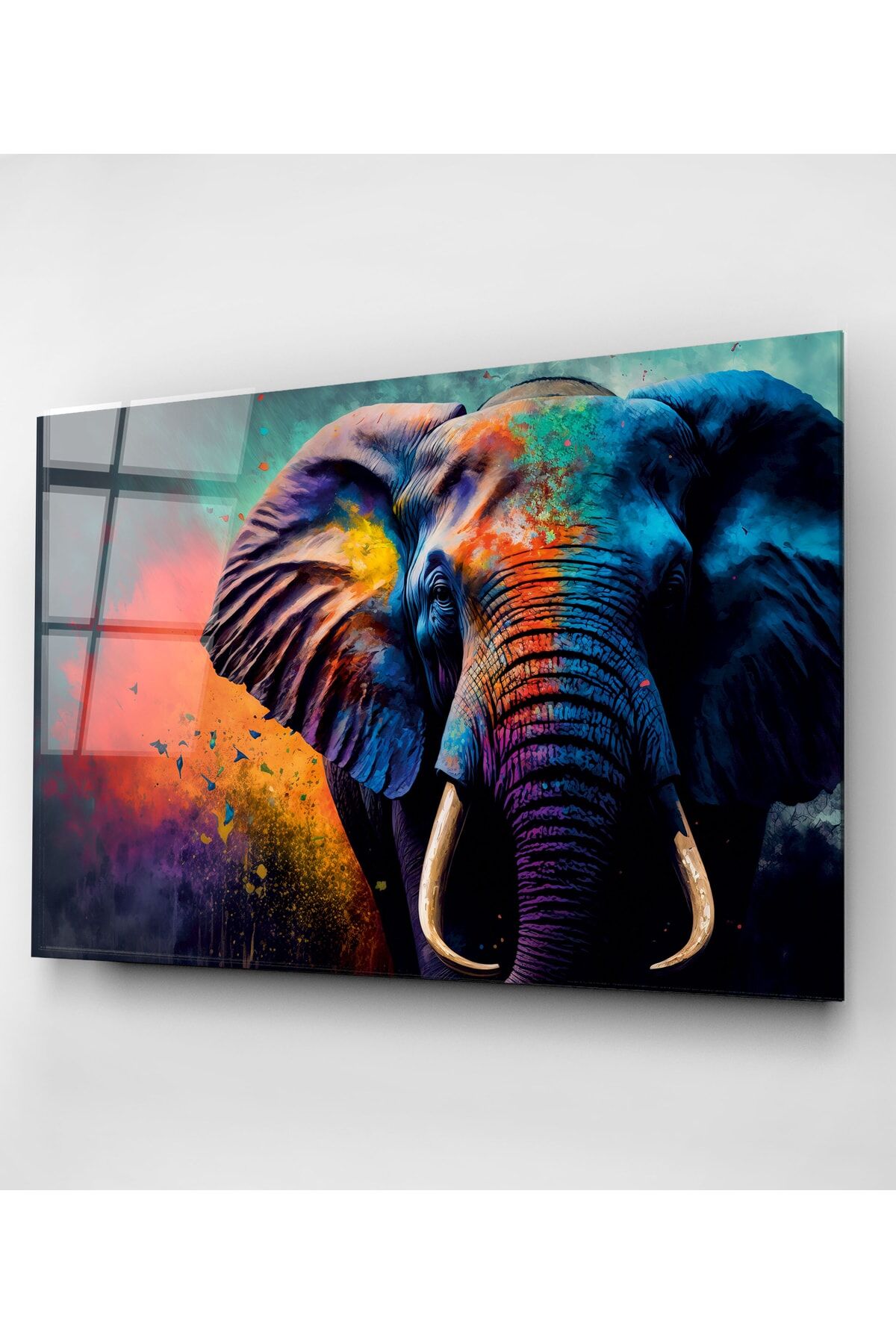 Colorful Elephant Cam Tablo, Dekoratif Cam Tablo