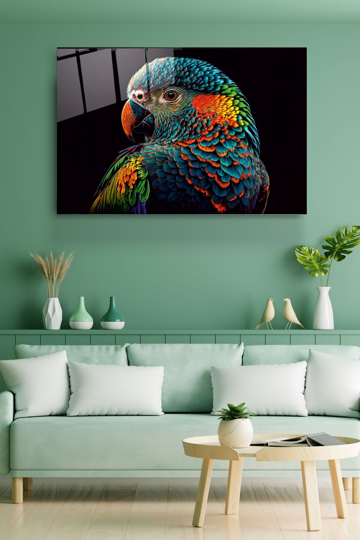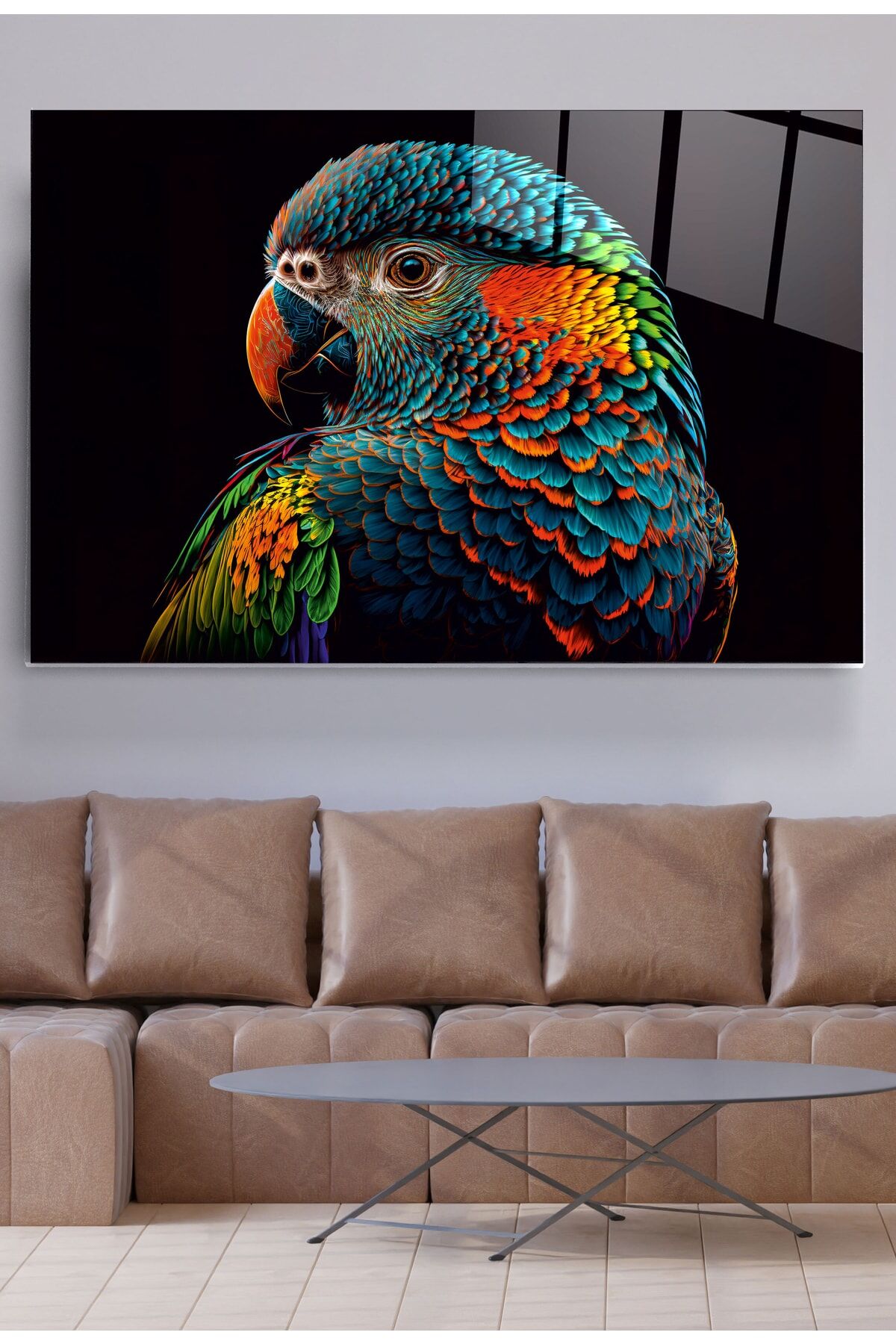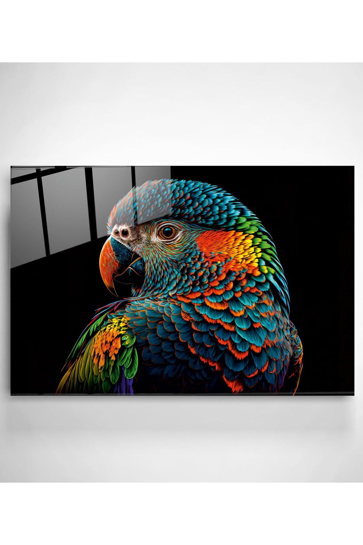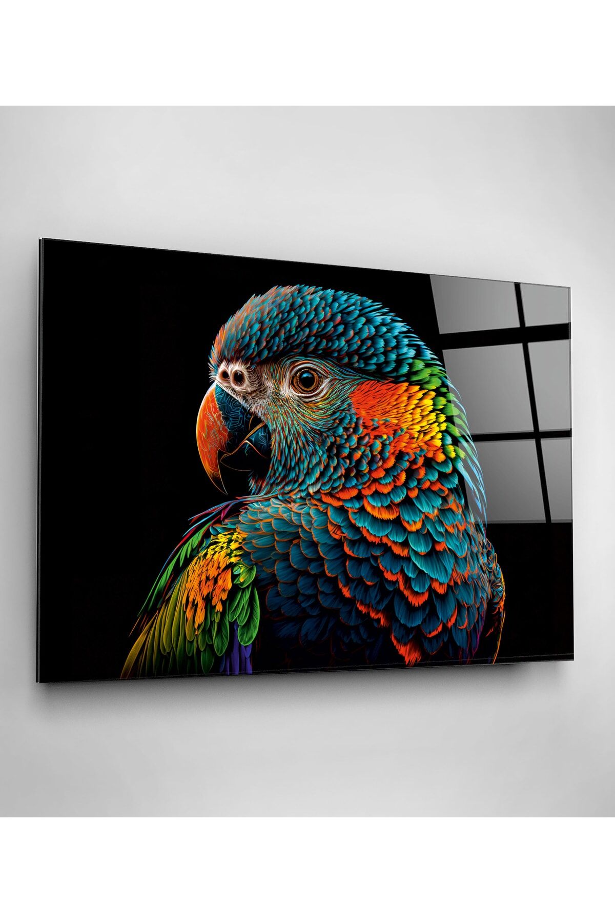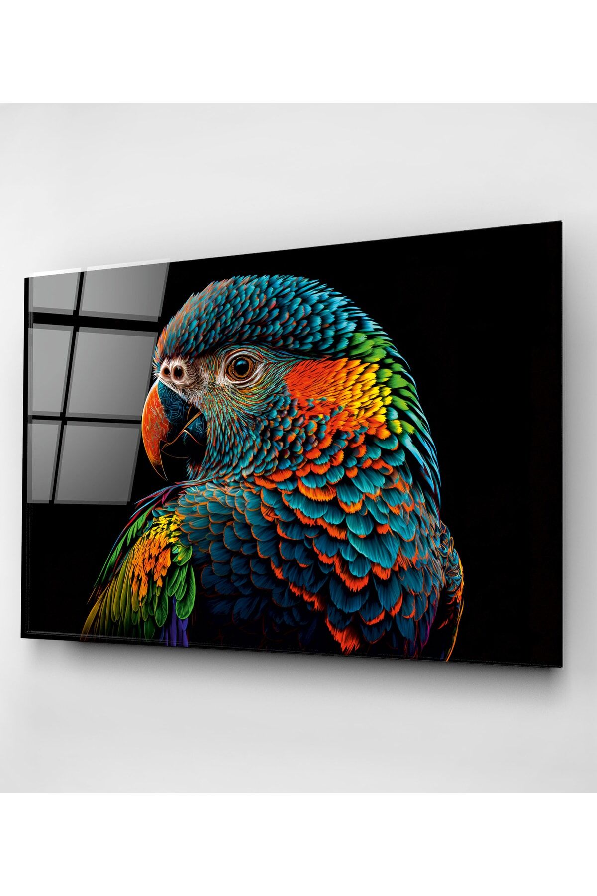 Colorful Feathered Bird Cam Tablo, Dekoratif Cam Tablo