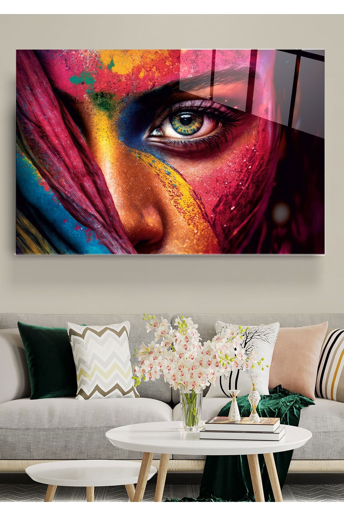 Colorful Woman Cam Tablo, Dekoratif Cam Tablo