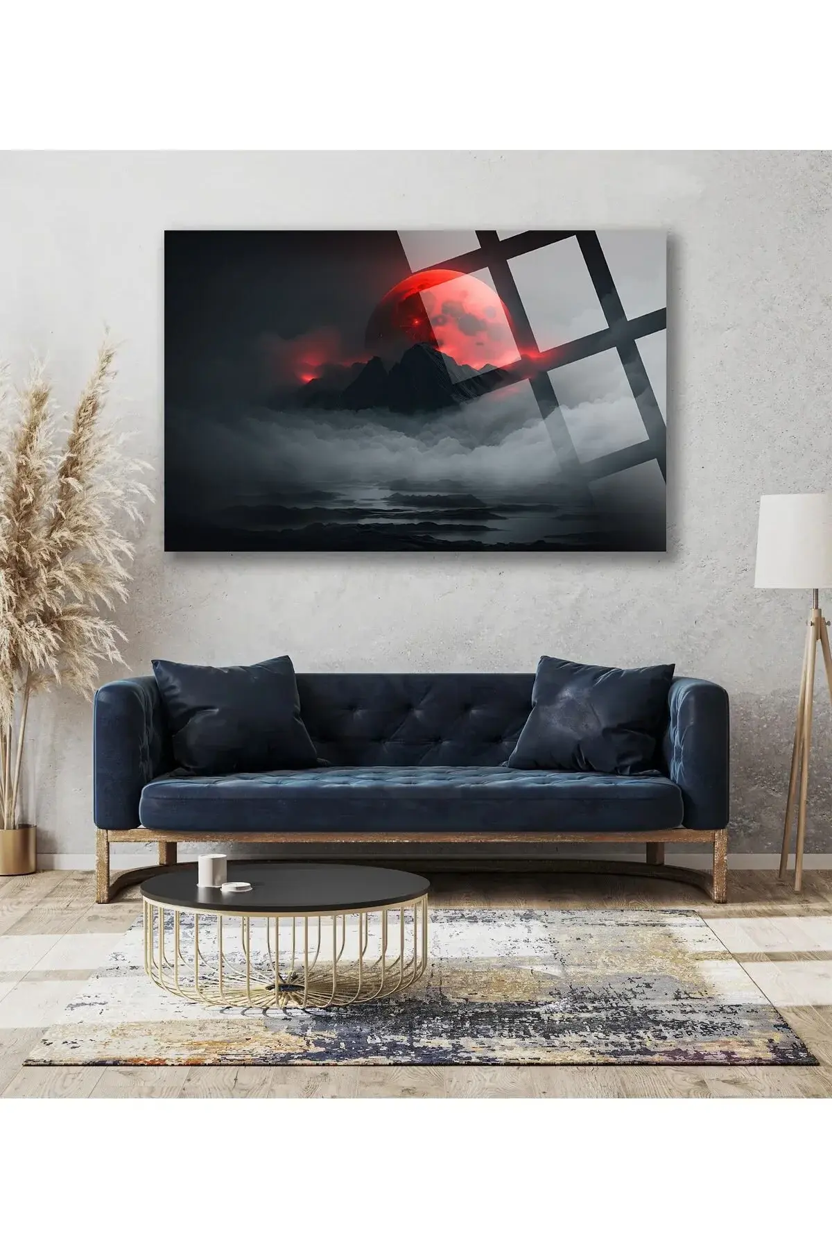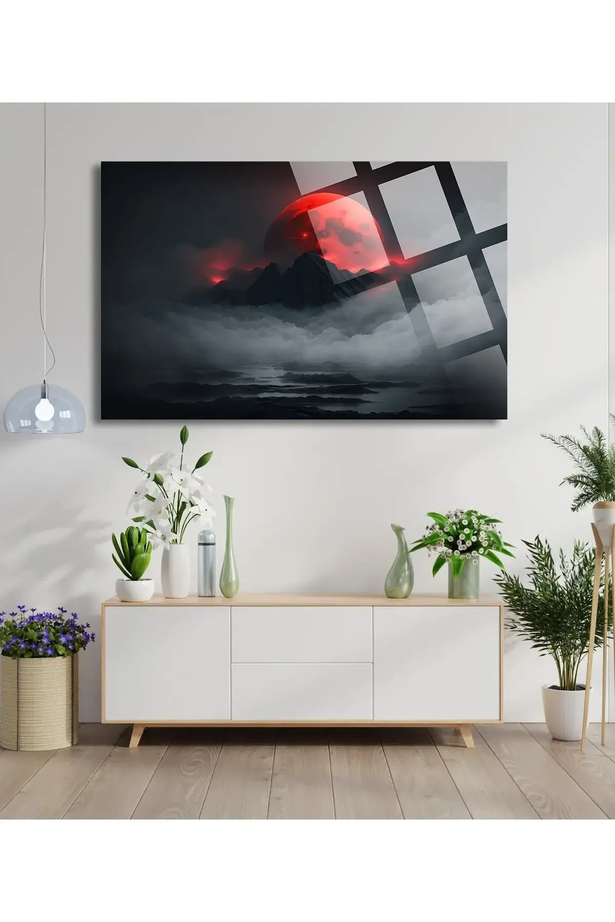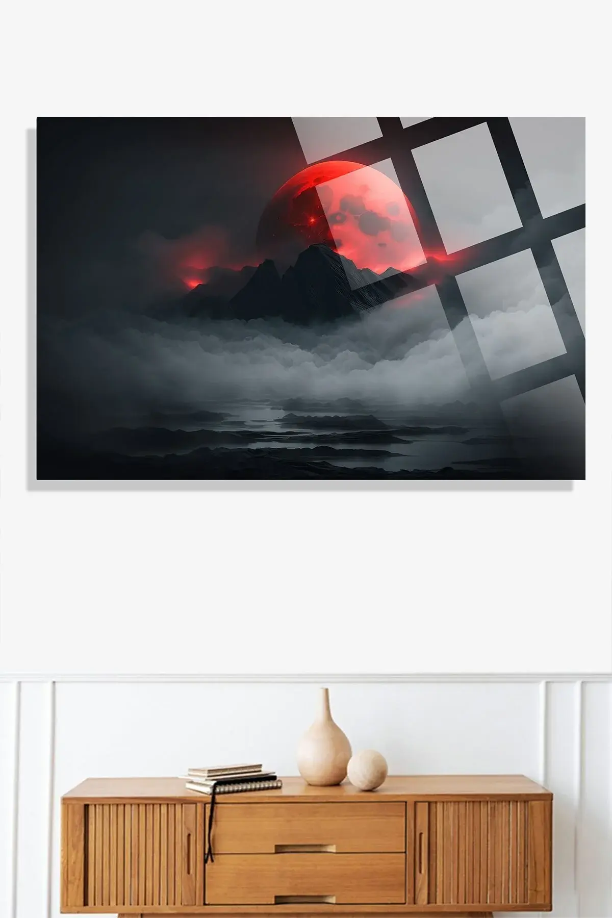 Dağlardaki Harika Kırmızı Ay Manzarası 4mm Lüks Kırılmaz Temperli Yüksek Çözünürlüklü Cam Tablo