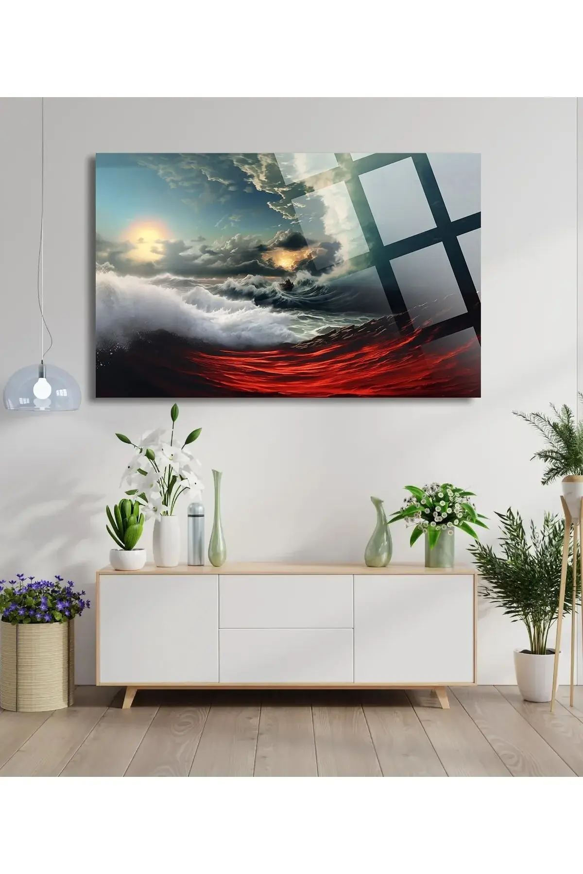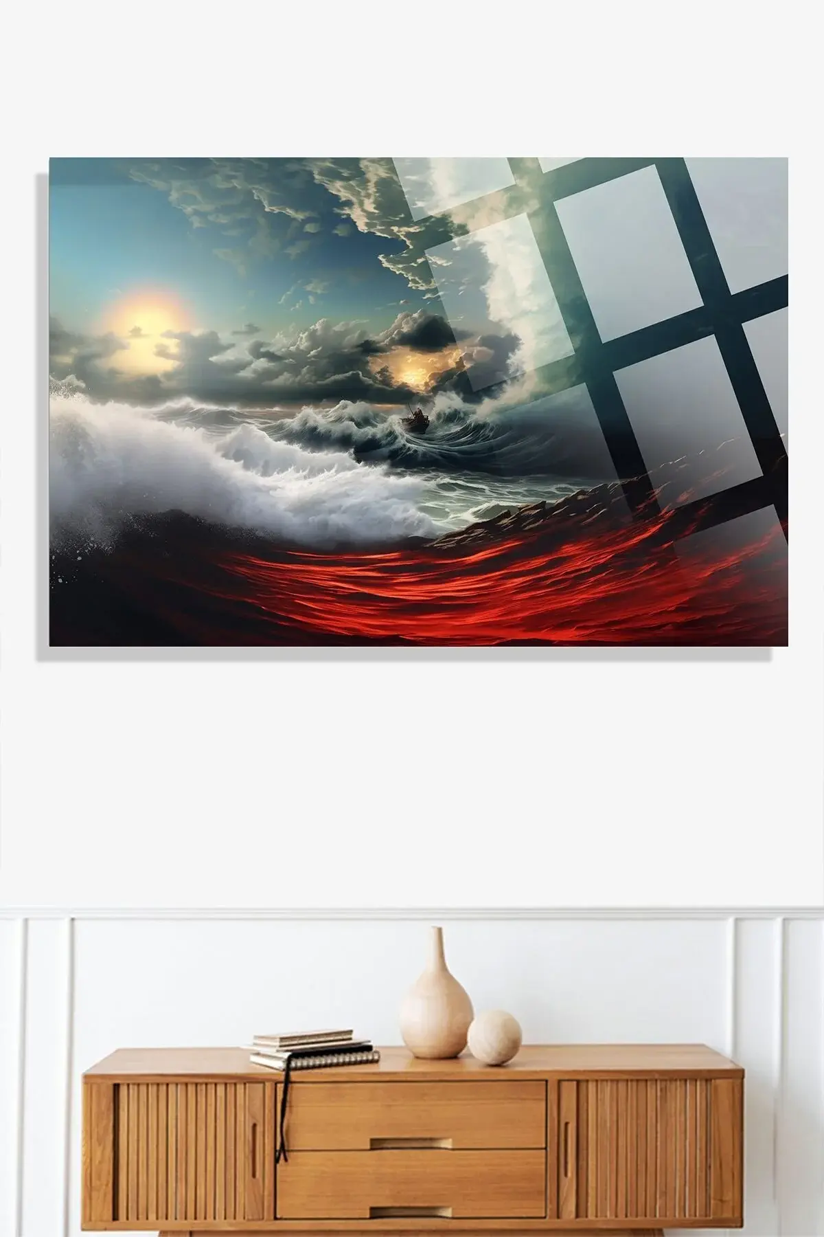 Denizde Dalga Manzarası 4mm Lüks Kırılmaz Temperli Yüksek Çözünürlüklü Cam Tablo