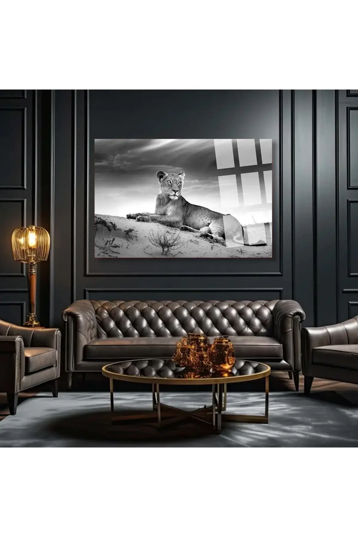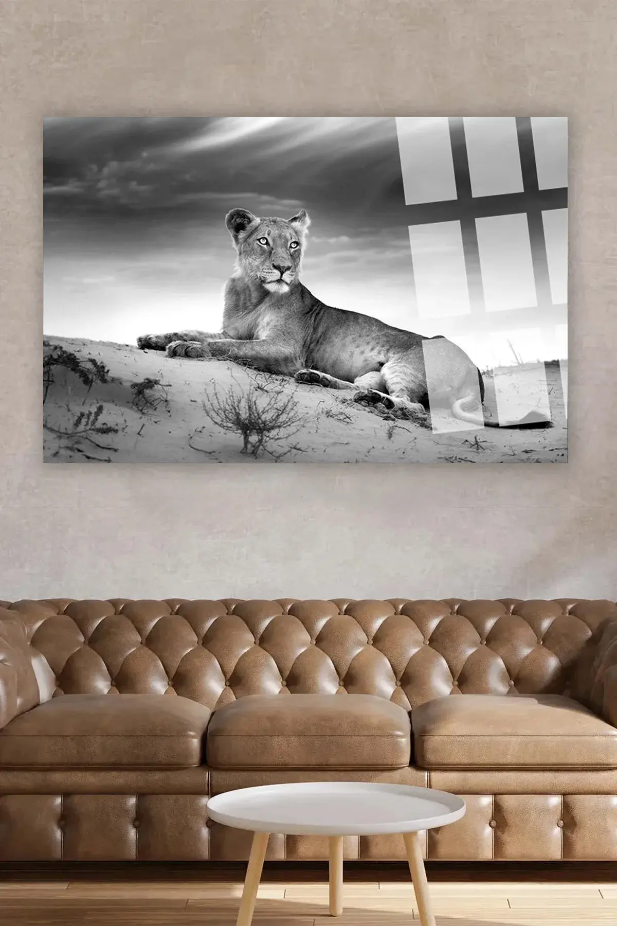 DİŞİ ASLAN SİYAH BEYAZ YATAY CAM TABLO ULRTA CANLI RENKİ CAM TABLO EV HEDİYESİ KIRILMAZ CAM Beyaz