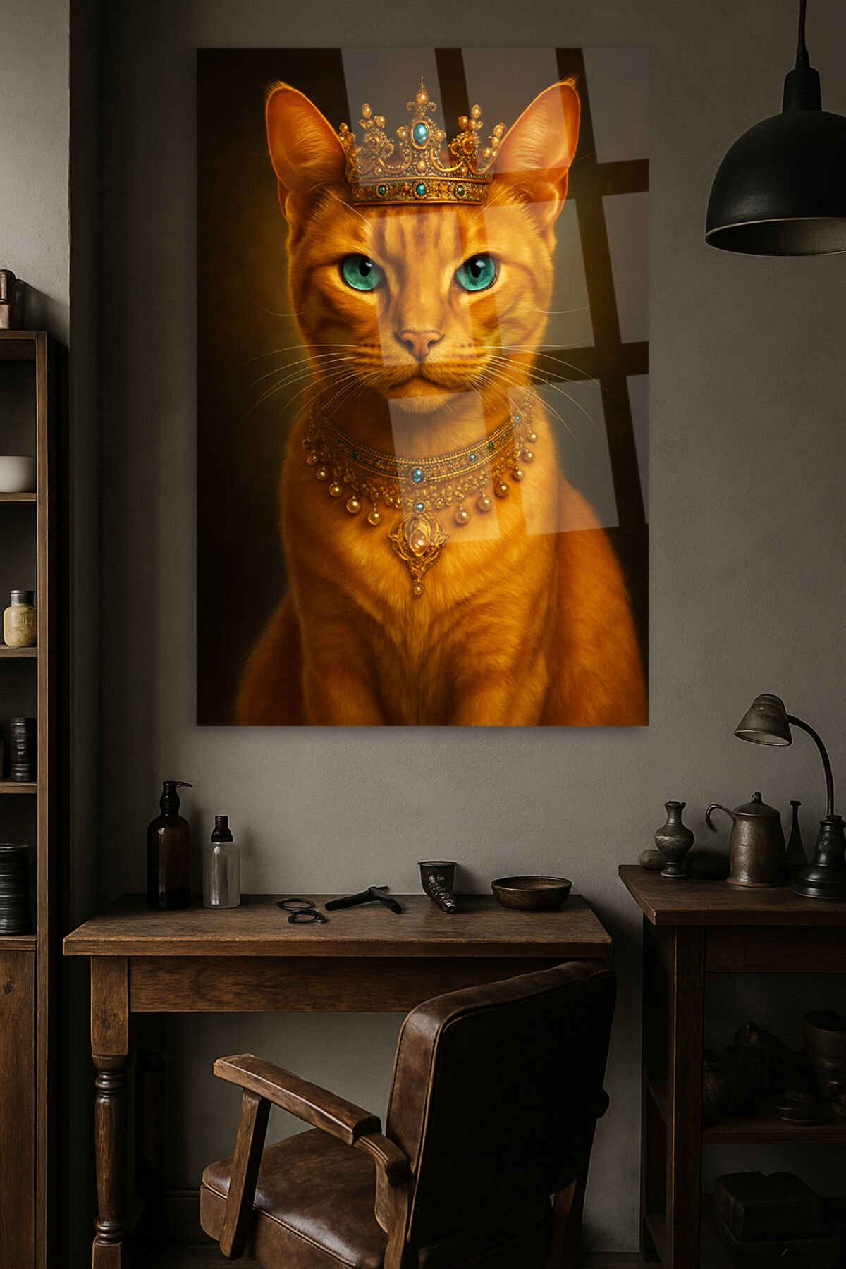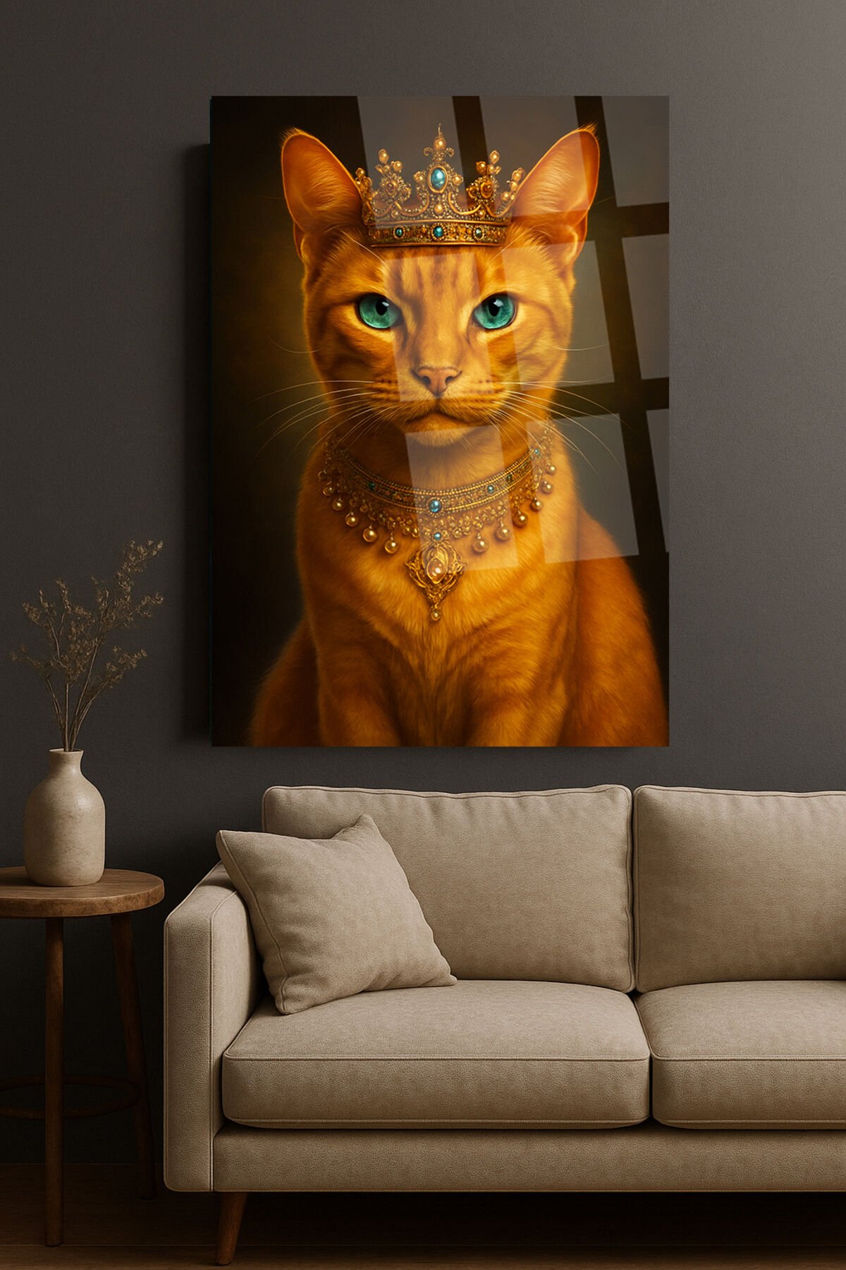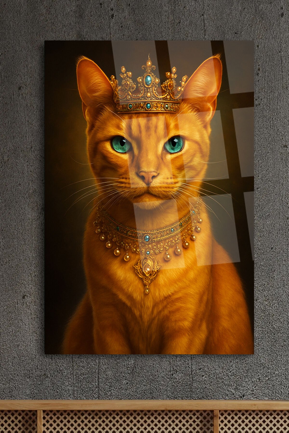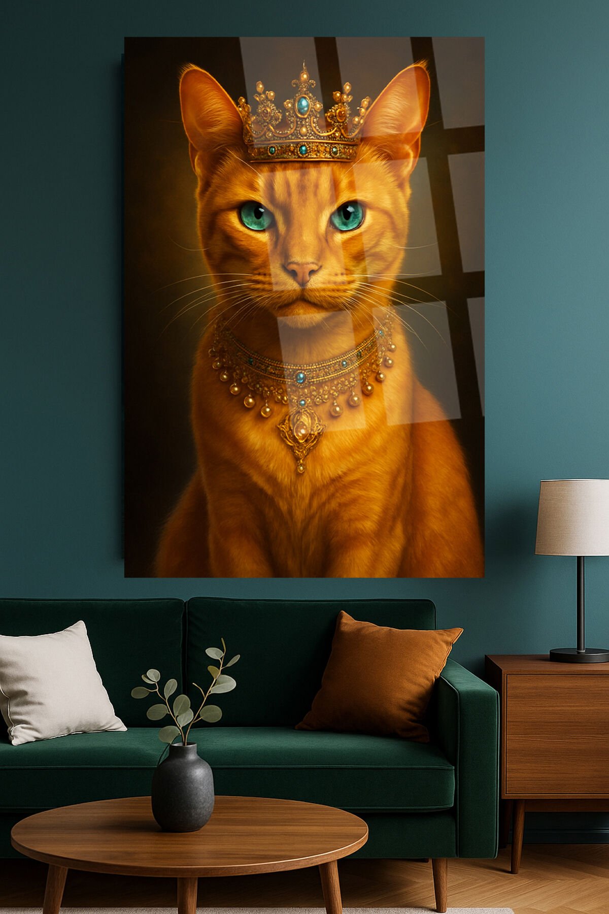 DİŞİ PRENSES KEDİ TASARIMI KRALİÇE KEDİ KIRILMAZ CAM TABLO İŞ YERİ HEDİYESİ SEVİMLİ TABLO Turuncu