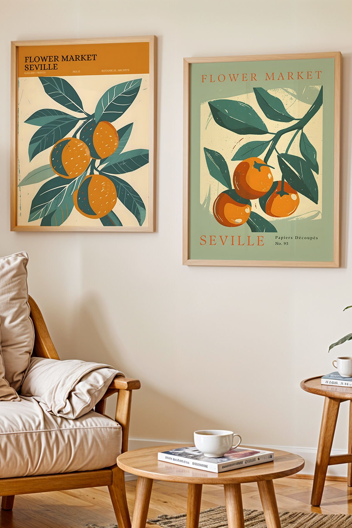 DOĞAL AHŞAP - 2'Lİ Doğal Ahşap Çerçeveli Flower Market Seville Tablosu – Tropikal Çiçek Sanatı