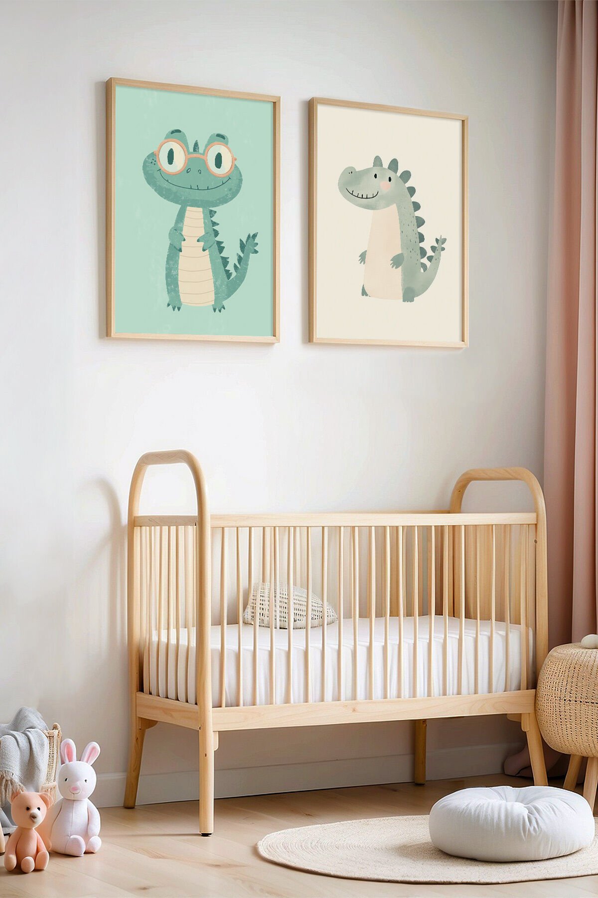 DOĞAL AHŞAP - 2'li Mavi Timsahcıklar Çocuk Odası Ve Bebek Odası Ahşap Çerçeveli Duvar Tablosu