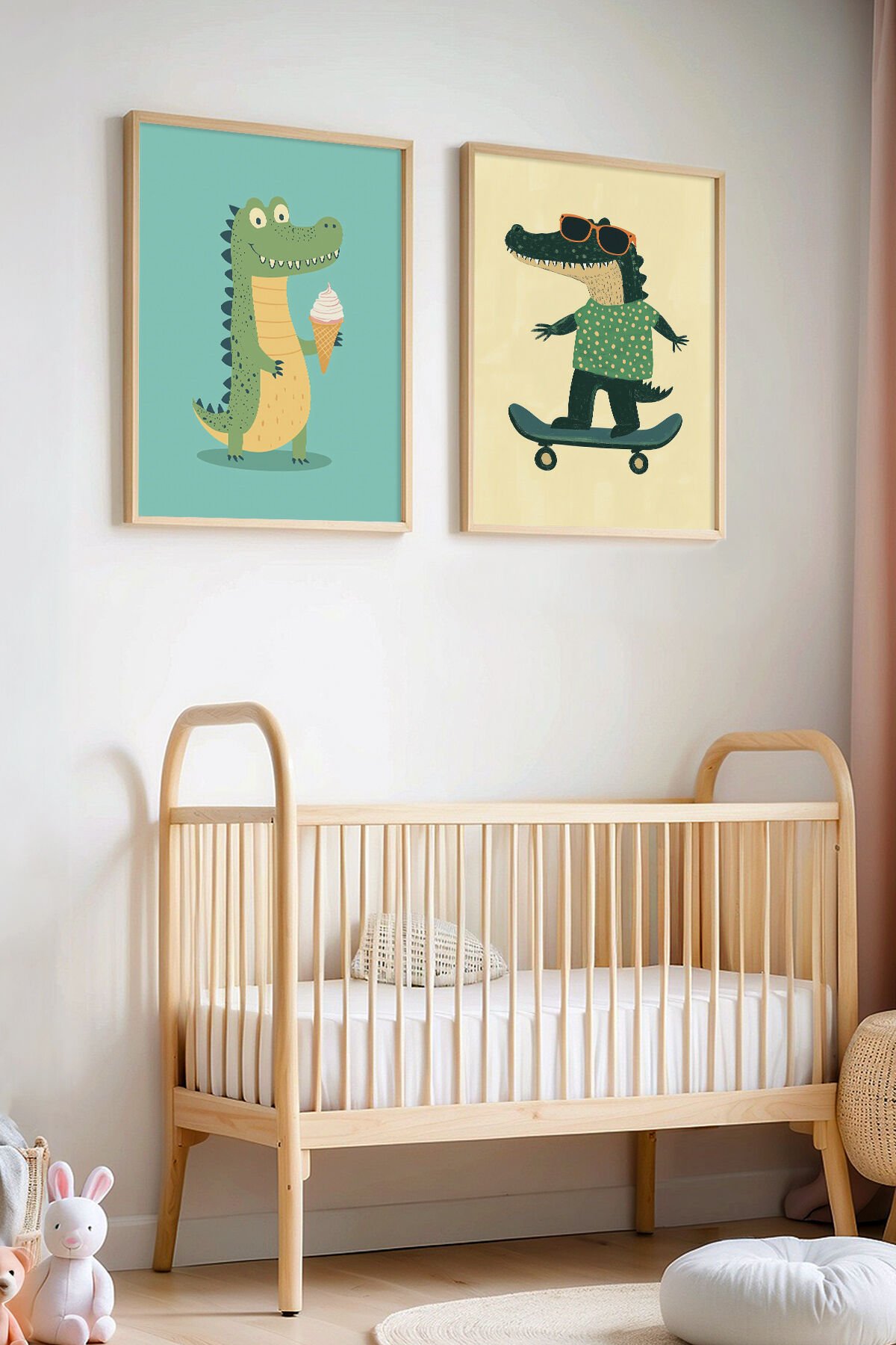 DOĞAL AHŞAP - 2'li Sevimli Timsahlar Çocuk Odası Ahşap Çerçeveli Duvar Tablosu