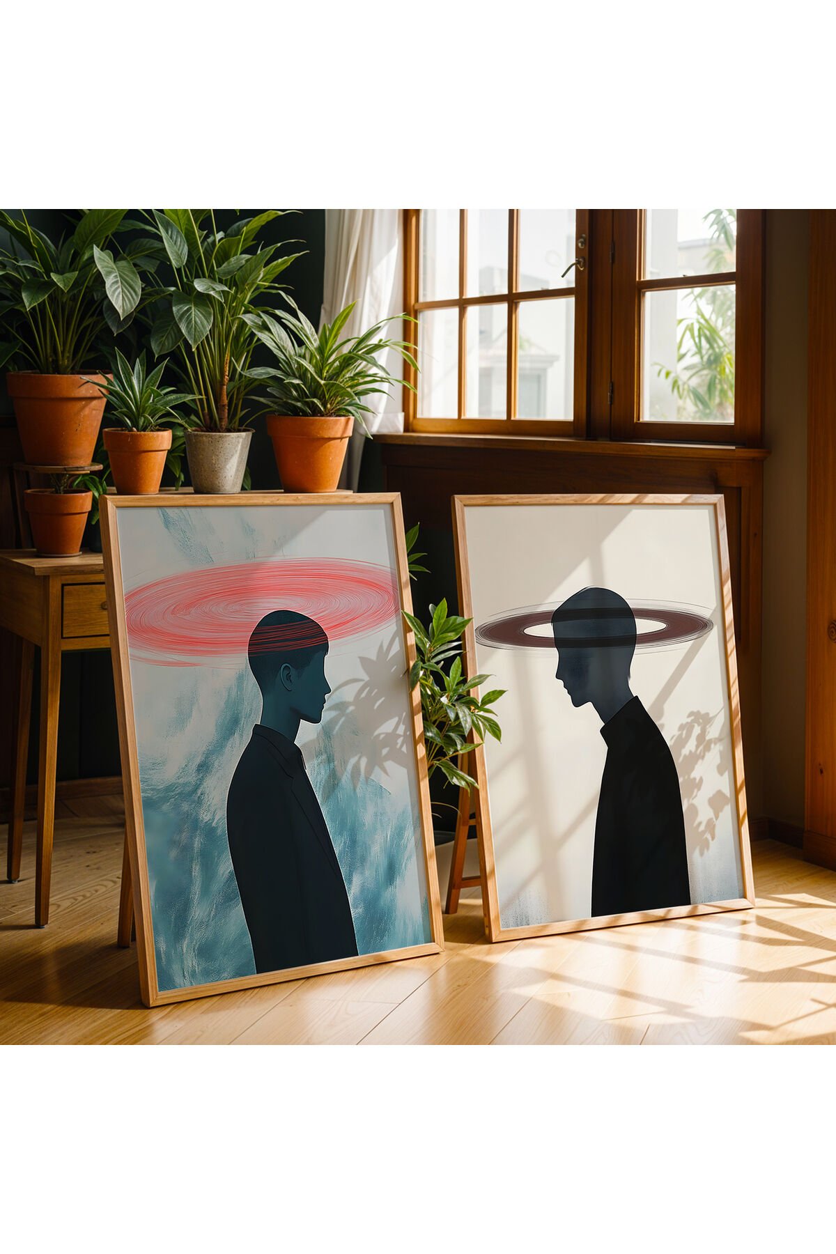 DOĞAL AHŞAP - Abstract Düşünce Evreni İkili Doğal Ahşap Çerçeveli Duvar Tablo Seti