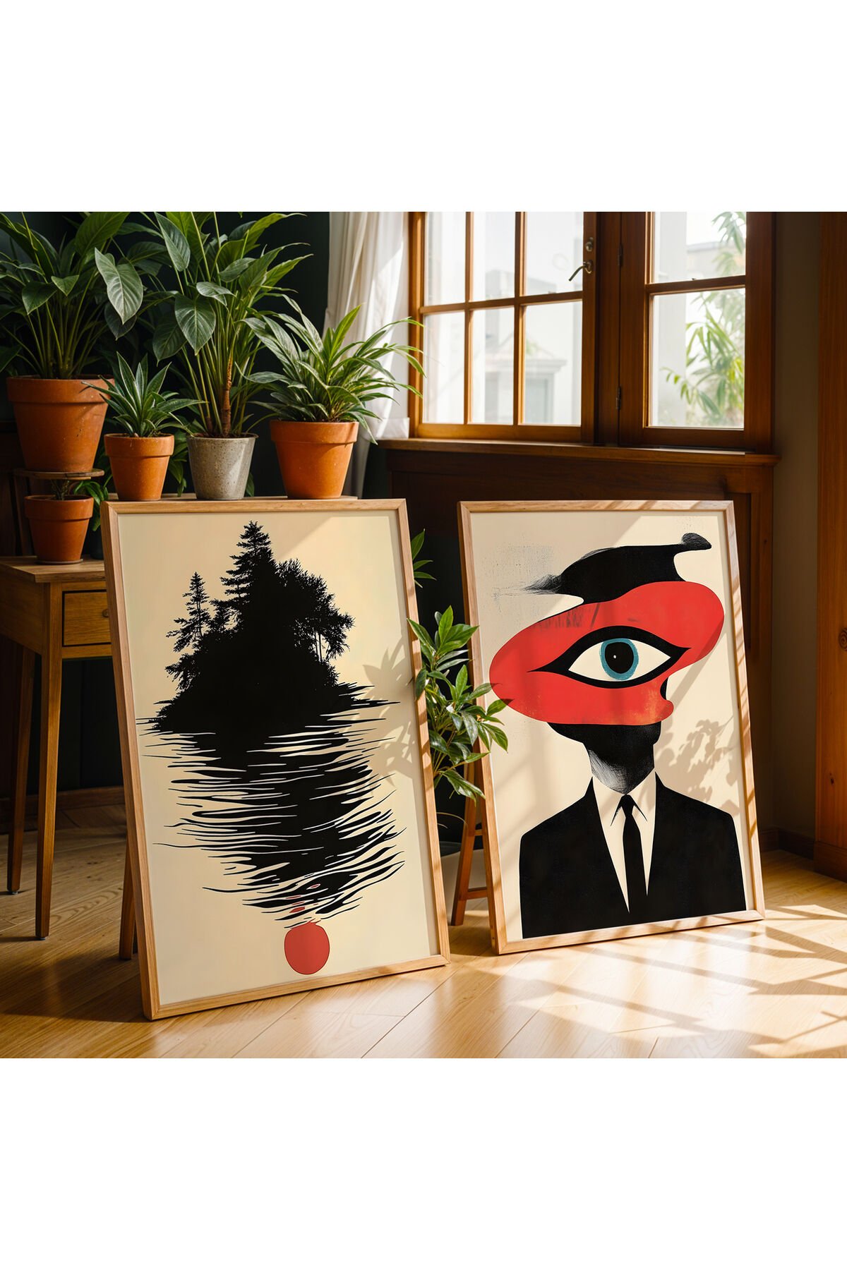 DOĞAL AHŞAP - Abstract İfade Sanatı İkili Doğal Ahşap Çerçeveli Duvar Tablo Seti
